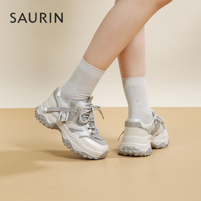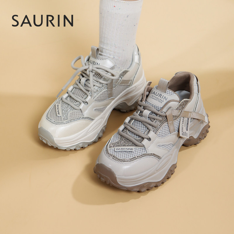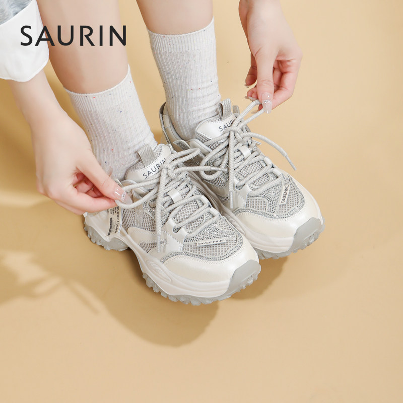📚 索兰老爹鞋女2025秋季新款复古网面厚底增高运动休闲鞋25CY27256