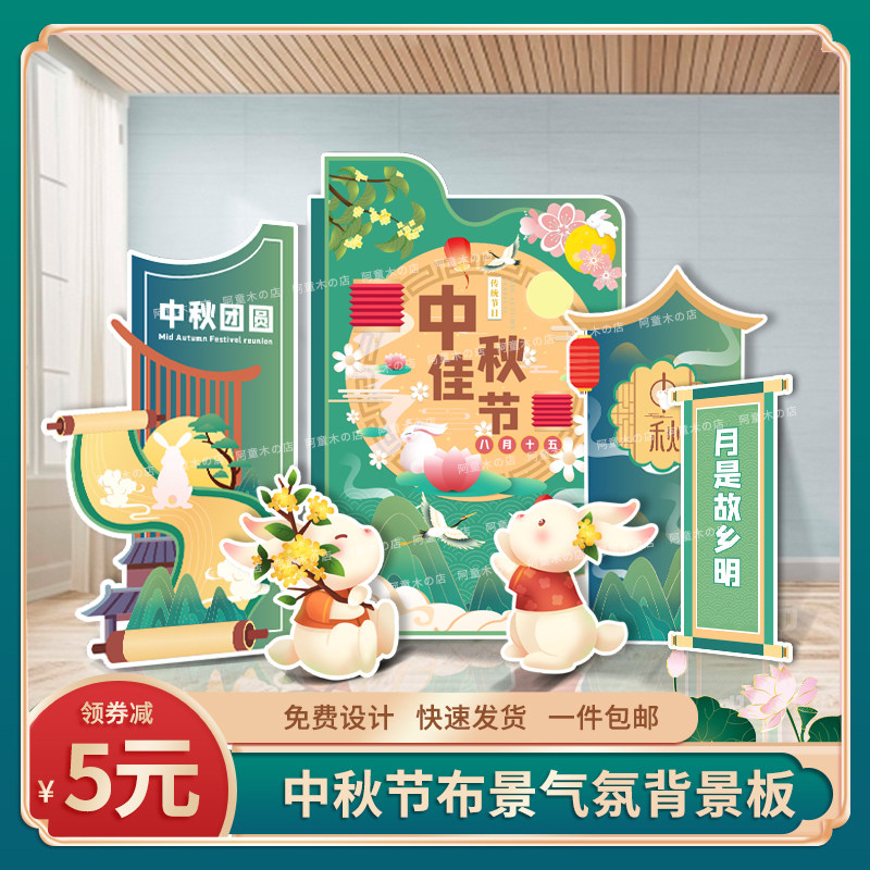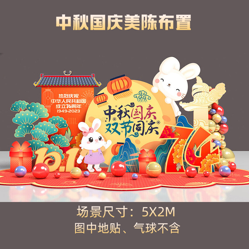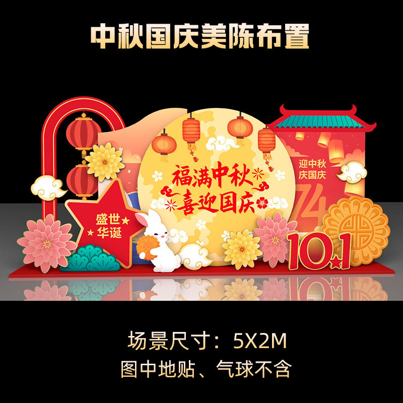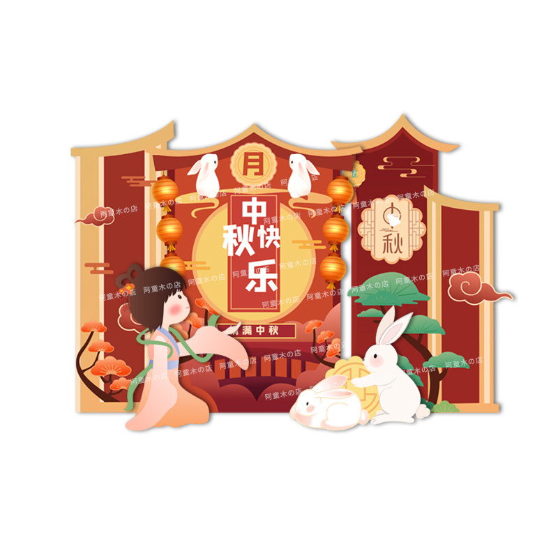 📚 中秋节装饰场景布置摆件美陈商场橱窗手举牌拍照框道具背景墙kt板