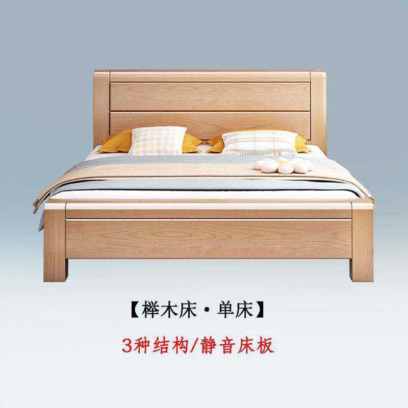 📚 加厚榉木实木床工厂直销1.8米双人1米5单人床2米x2米大床主卧原木