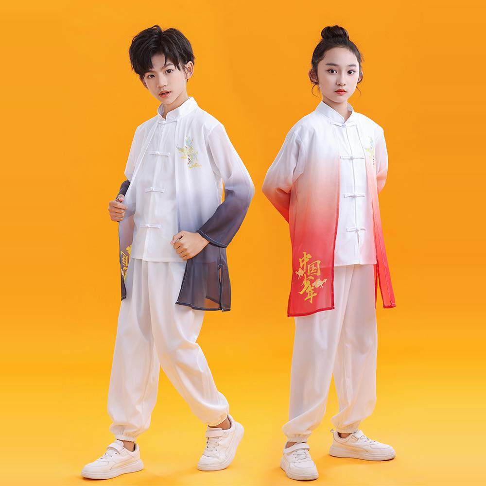 🎉每当孩子们穿上这套儿童武术练功服参加演出或太极表演时,他们的脸上总是洋溢着自信与自豪的笑容。他们仿佛成为了舞台上的明星,成为了家长和老师们心中的骄傲。