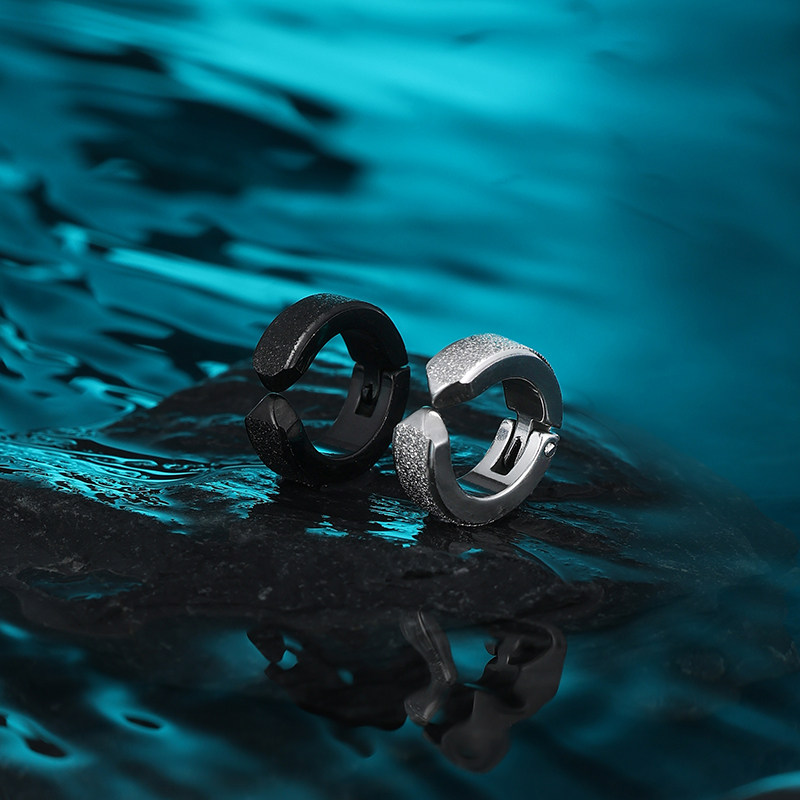 📚 银黑色磨砂耳夹无耳洞男生高级感耳骨夹男士潮流耳环钛钢男款耳饰