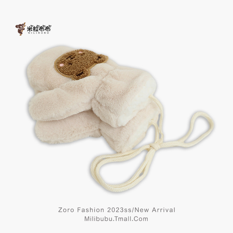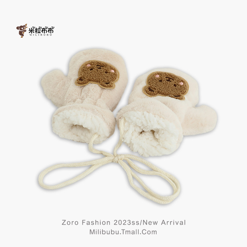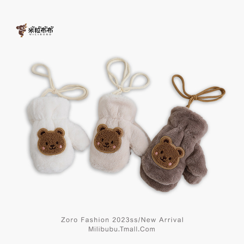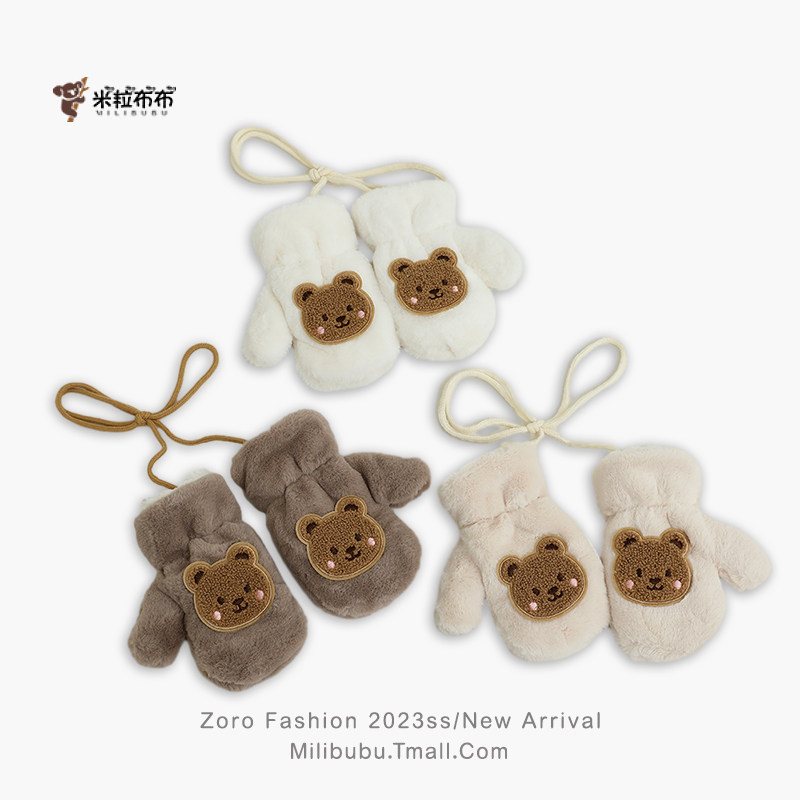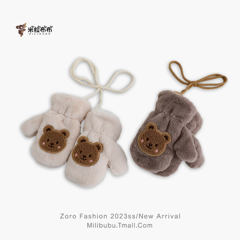 📚 宝宝冬季毛绒加厚卡通小熊保暖超萌连指手套儿童挂脖幼儿园男女童