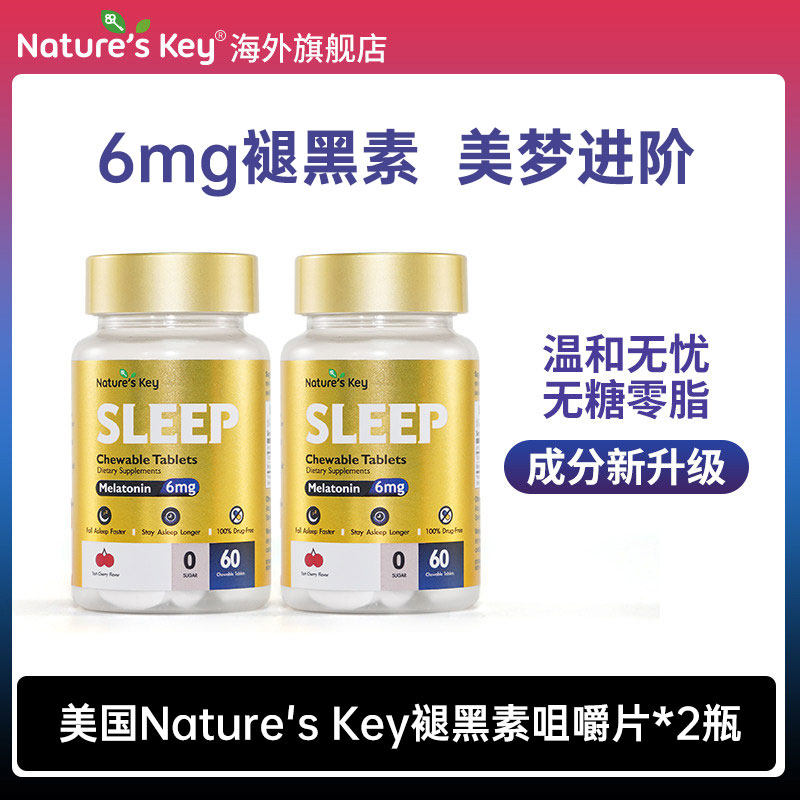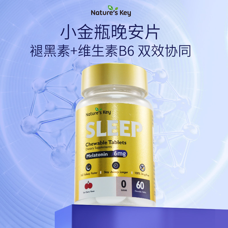📚 美国NaturesKey褪黑素咀嚼片自然之钥晚安小金瓶闪失睡眠无糖安瓶