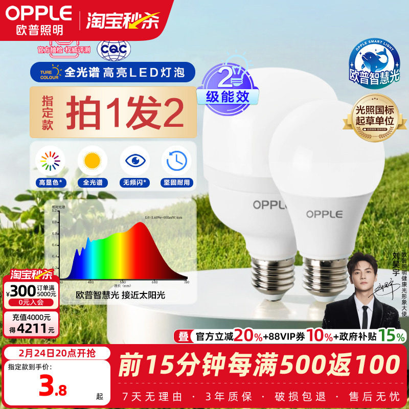 📚 欧普led灯泡全光谱高显色节能家用大功率超亮E27E14螺口光源QP