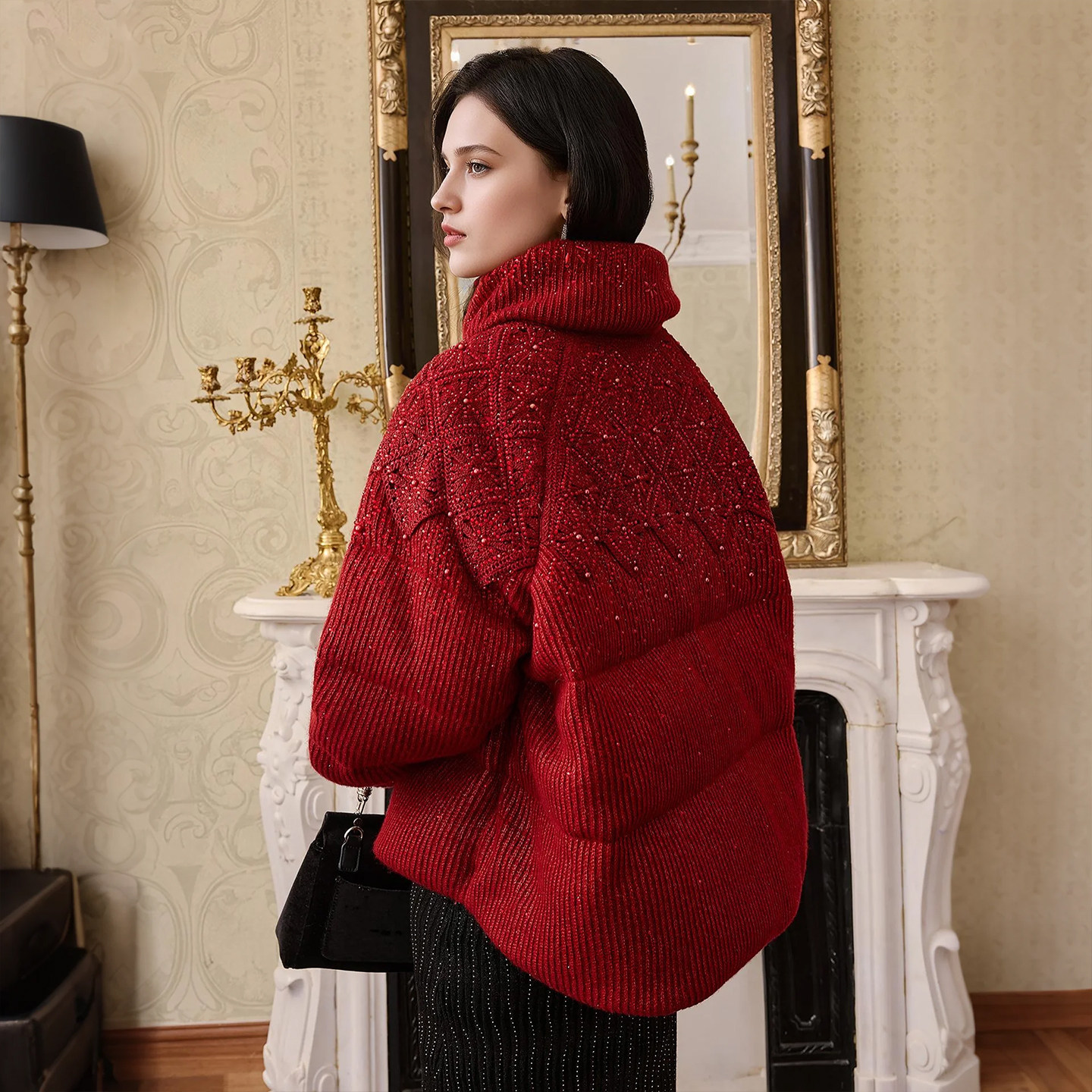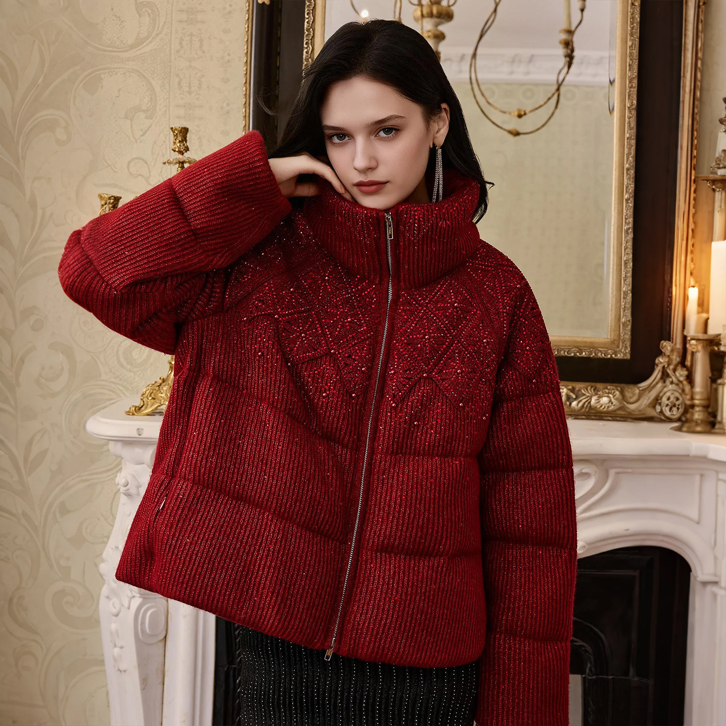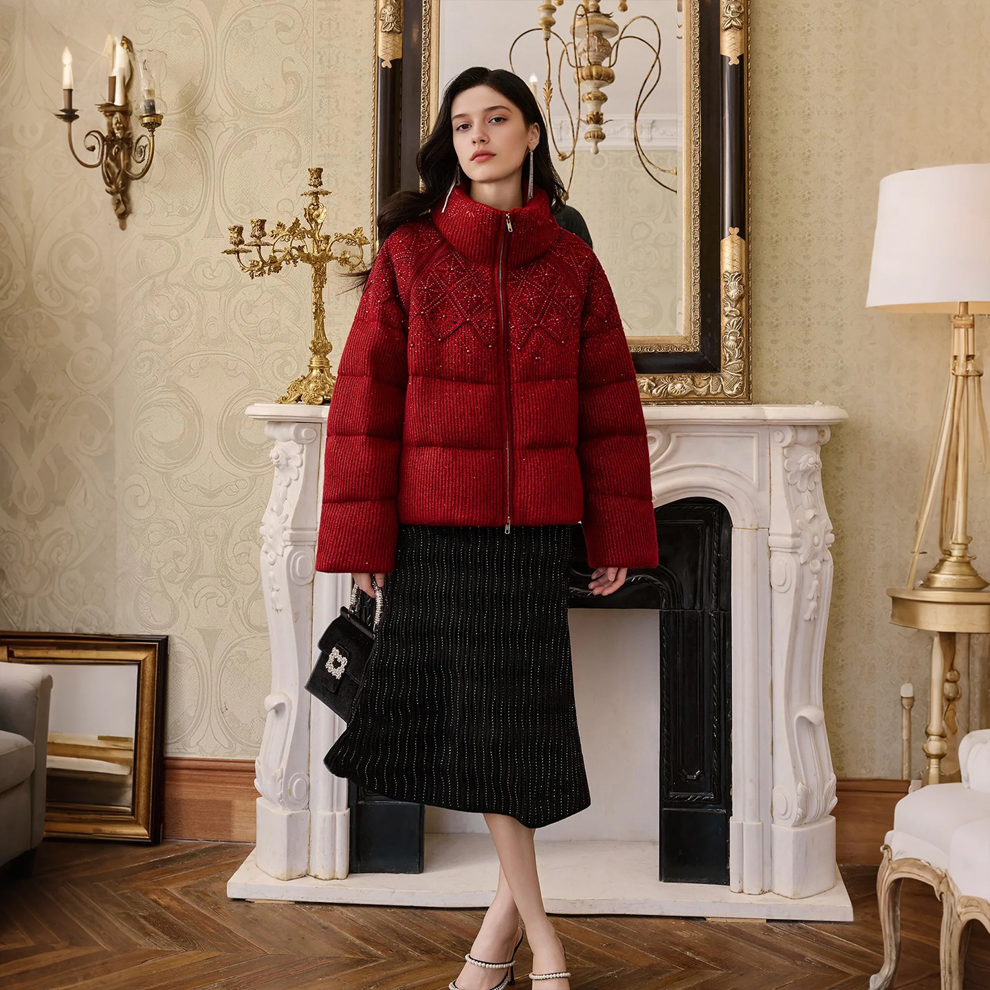 📚 【鹅绒服】HiSaily轻奢红色短款羽绒服女立领宽松百搭设计师外套