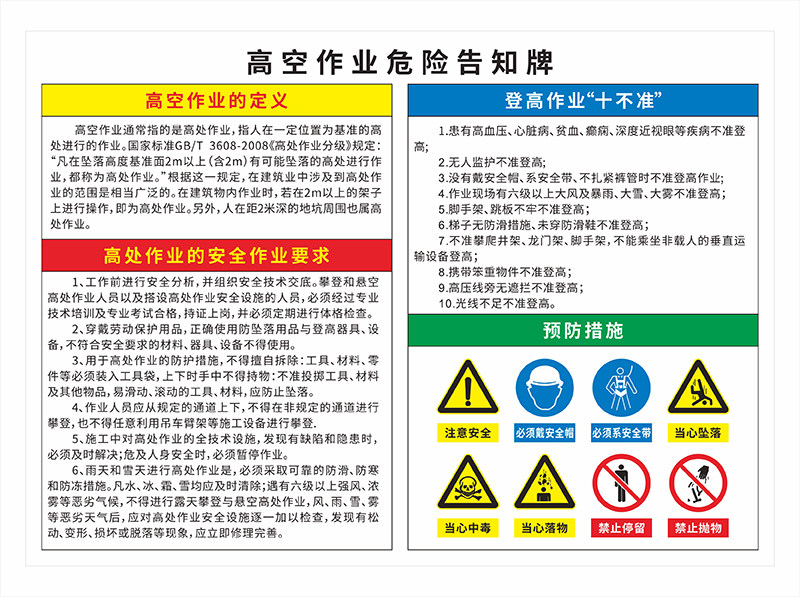 📚 高空作业危险告知牌工地登高作业十不准安全要求事故预防措施警示牌注意安全必须系安全带当心坠落标志牌定制