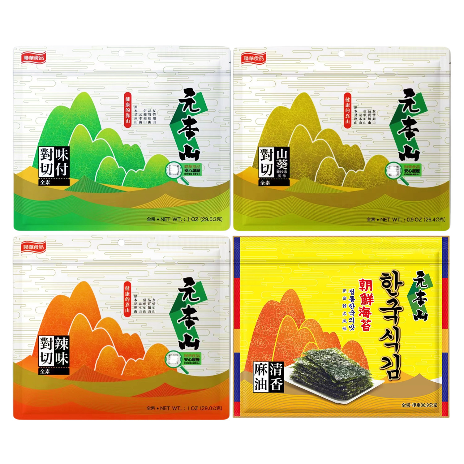 📚 四袋包邮台湾原装联华元本山海苔味付对切朝鲜海苔山葵辣味对切