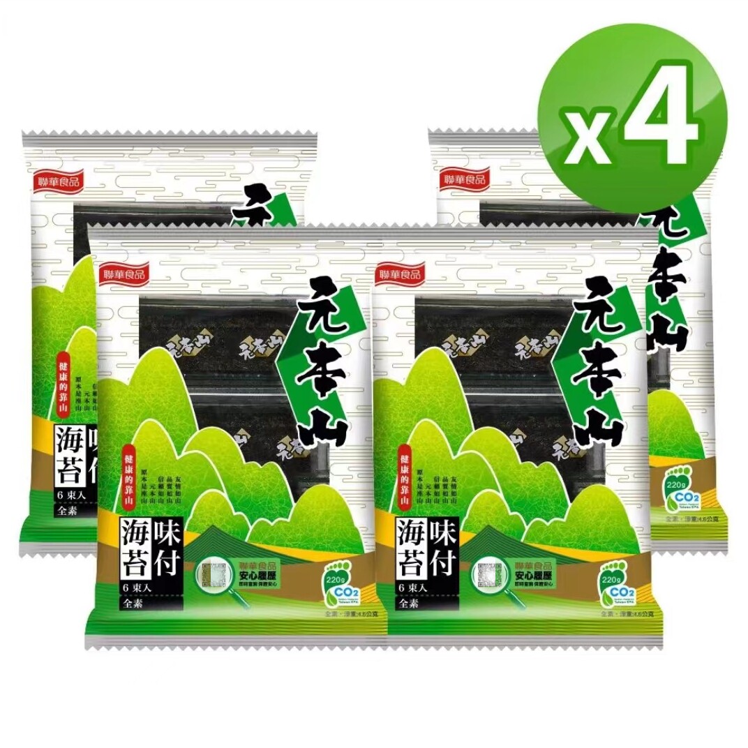 📚 拍四袋包邮台湾原装联华元本山海苔味付对切全素料理小零食海苔片