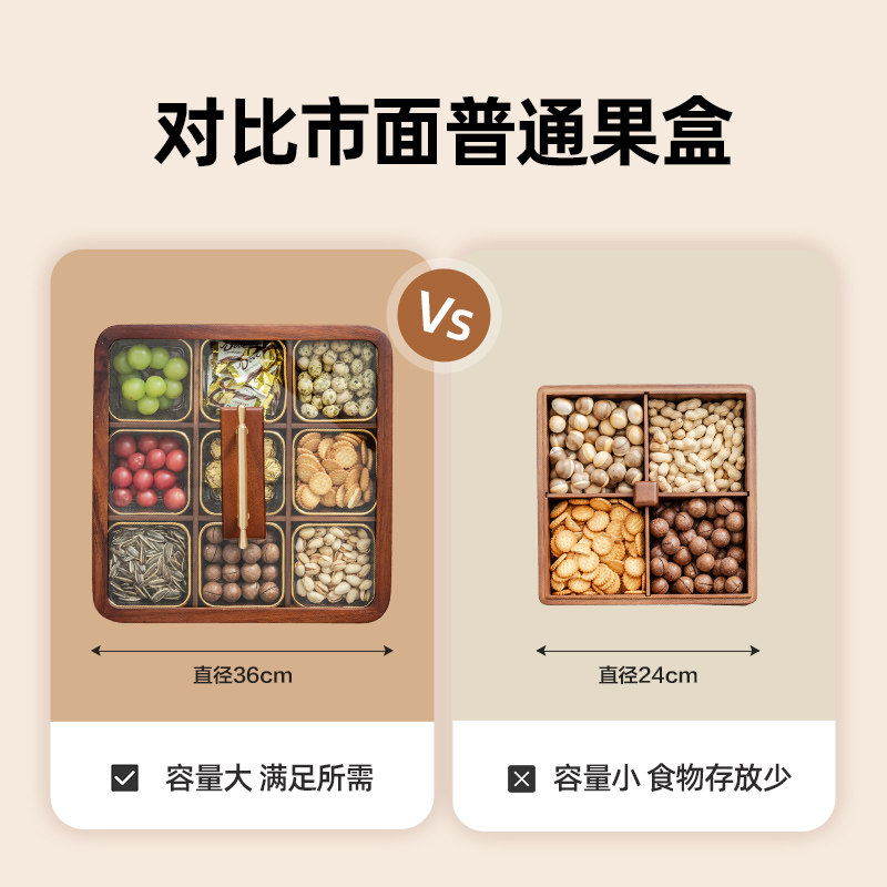 📚 九宫格果盘茶几茶点干果盘小吃零食盘家用客厅2025年新款实木果盒