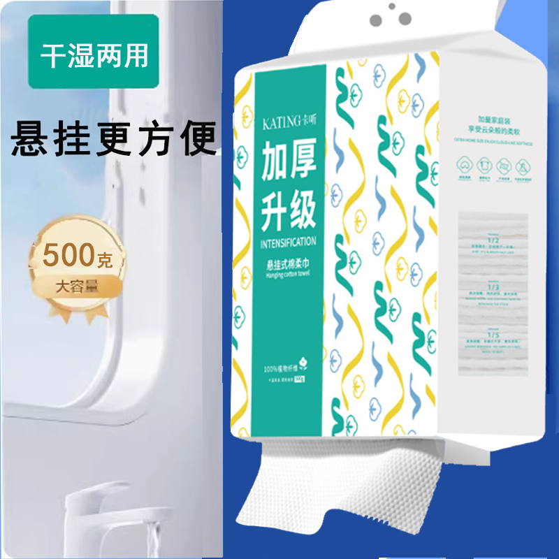 📚 一次性植棉壁挂式洗脸巾悬挂抽取加大加厚干湿两用棉柔洁面擦脸巾