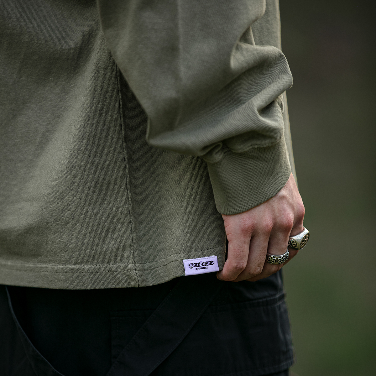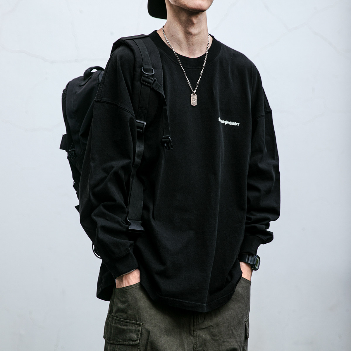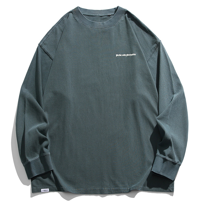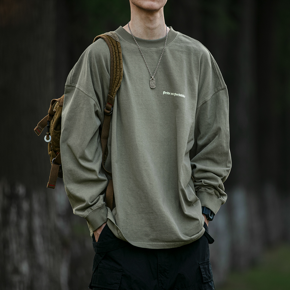 📚 秋冬重磅320G蜡染水洗高密度螺纹长袖男字母夜光圆领卫衣套头T恤