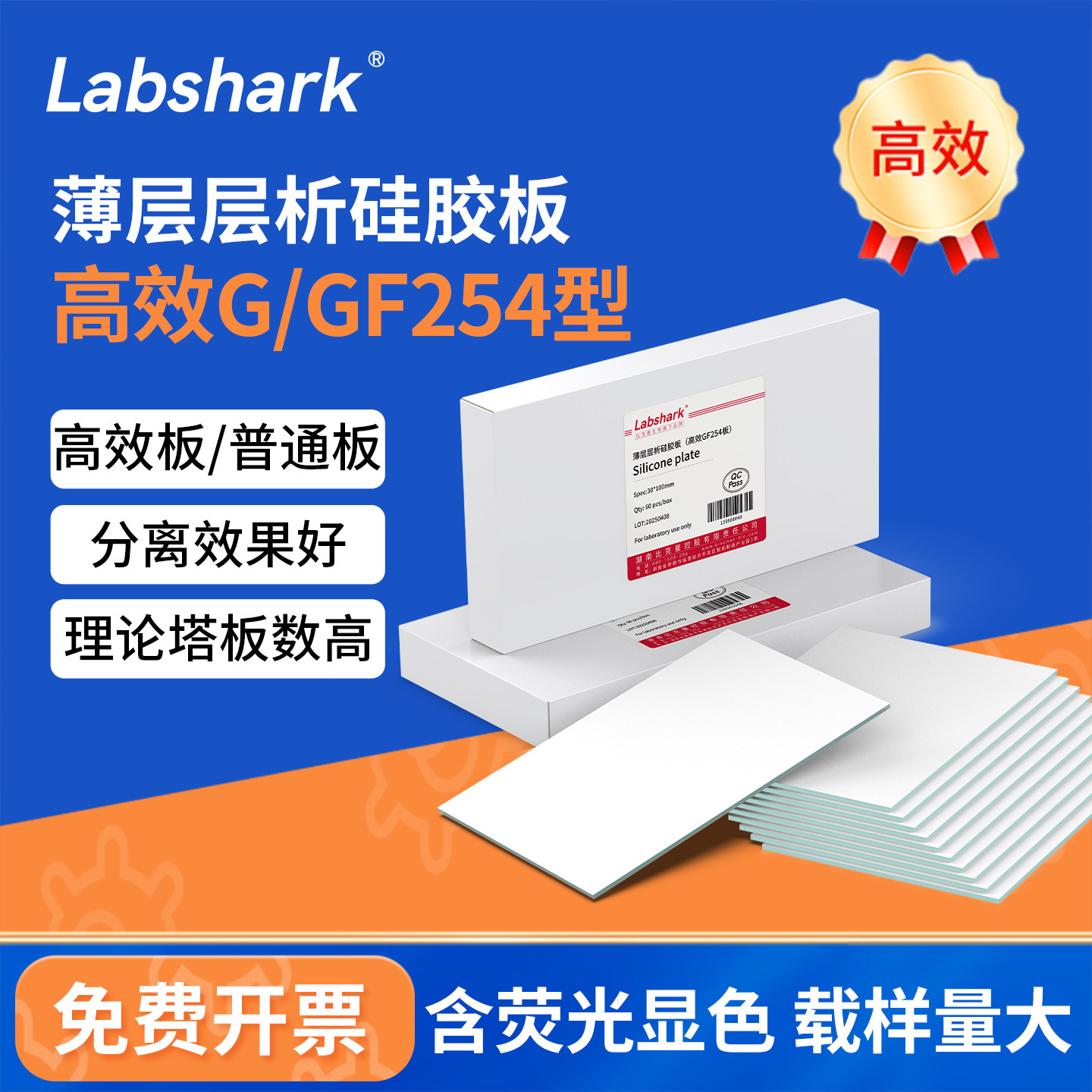📚 Labshark薄层层析硅胶板GF254色谱点样板G型tlc制备板荧光可显色