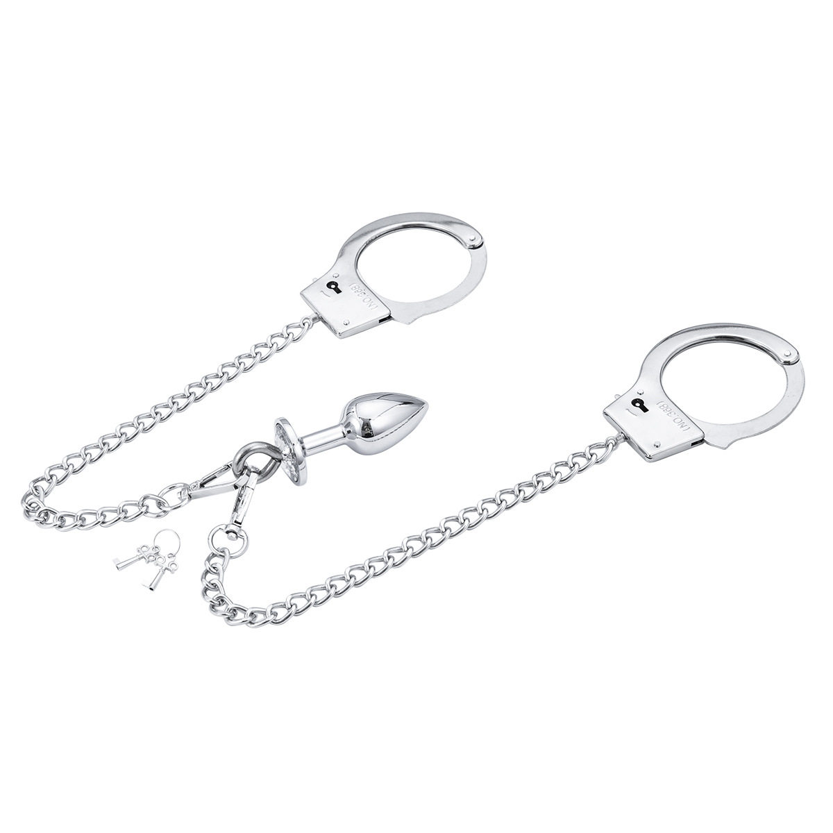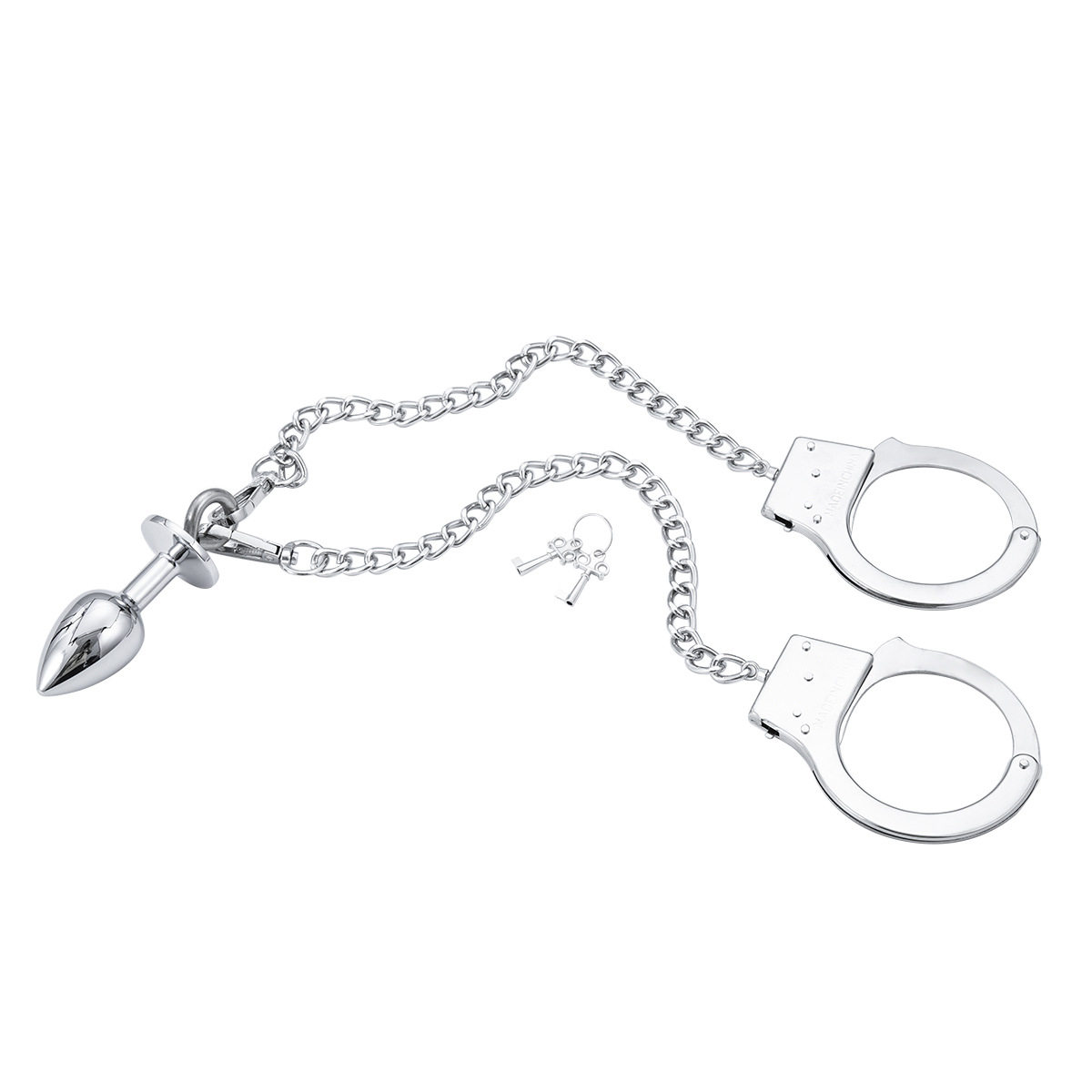📚 sm情趣用品肛塞带铁链手铐肛塞一体金属束缚情侣玩具夫妻共用工具