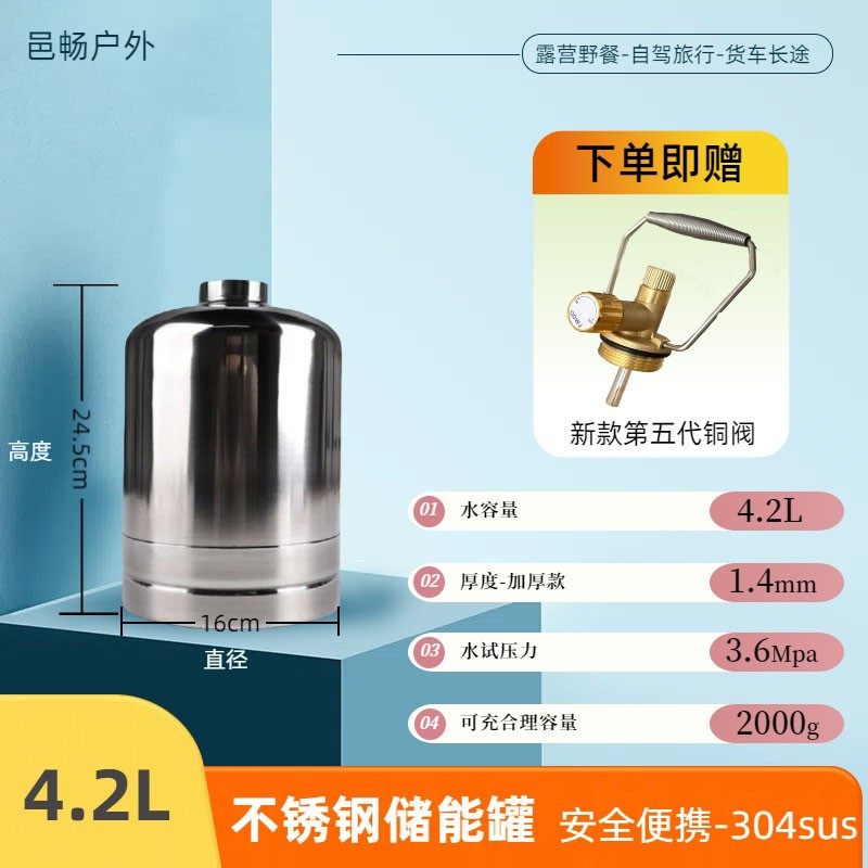 📚 户外循环储能罐304不锈钢反复导气钢瓶露营夜钓摆摊炉充装燃料瓶