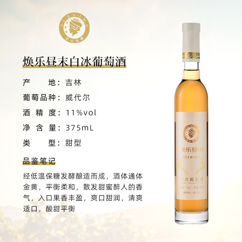 📚 长白山桓仁冰谷甜白葡萄酒375ml双支装冰酒威代尔微醺女士香槟酒