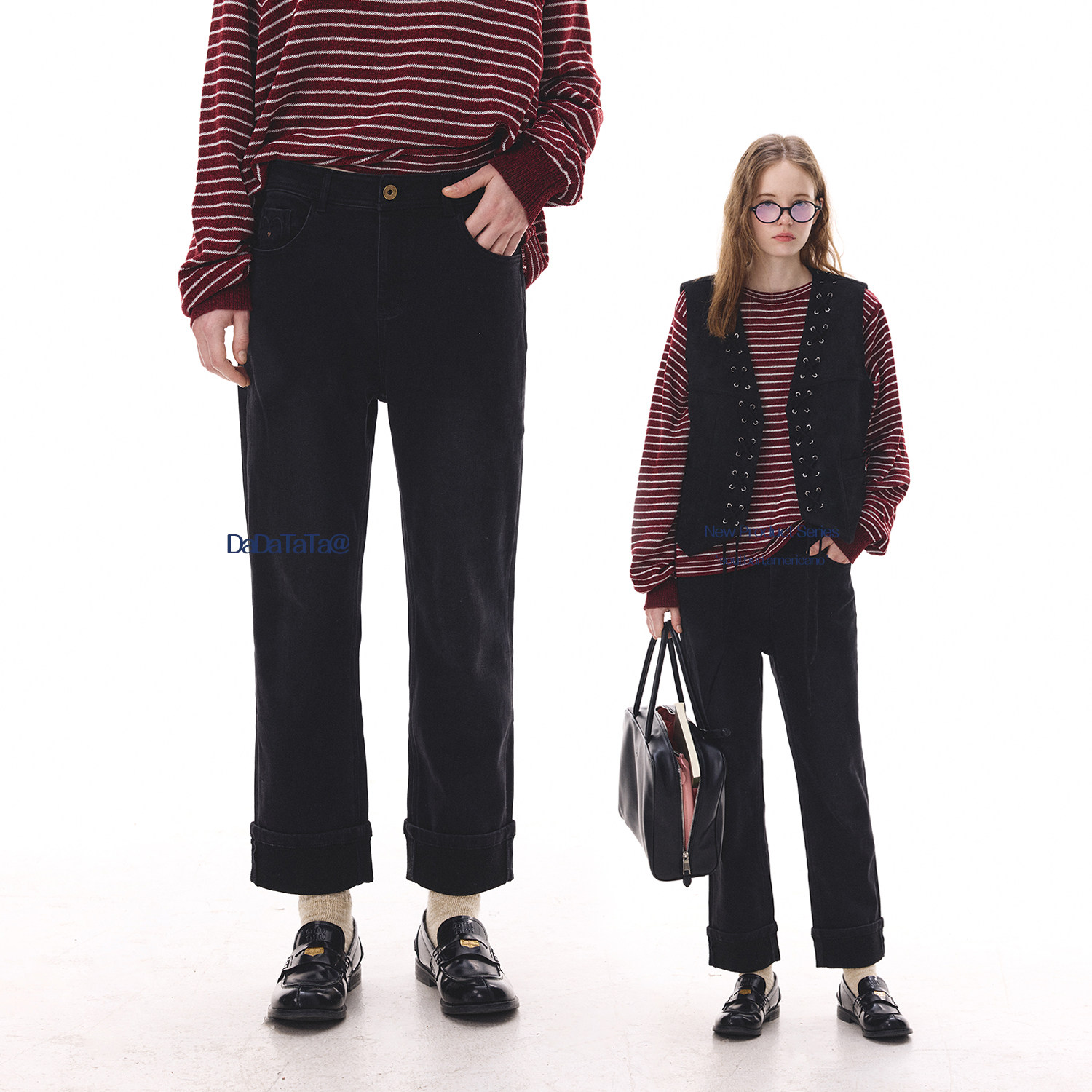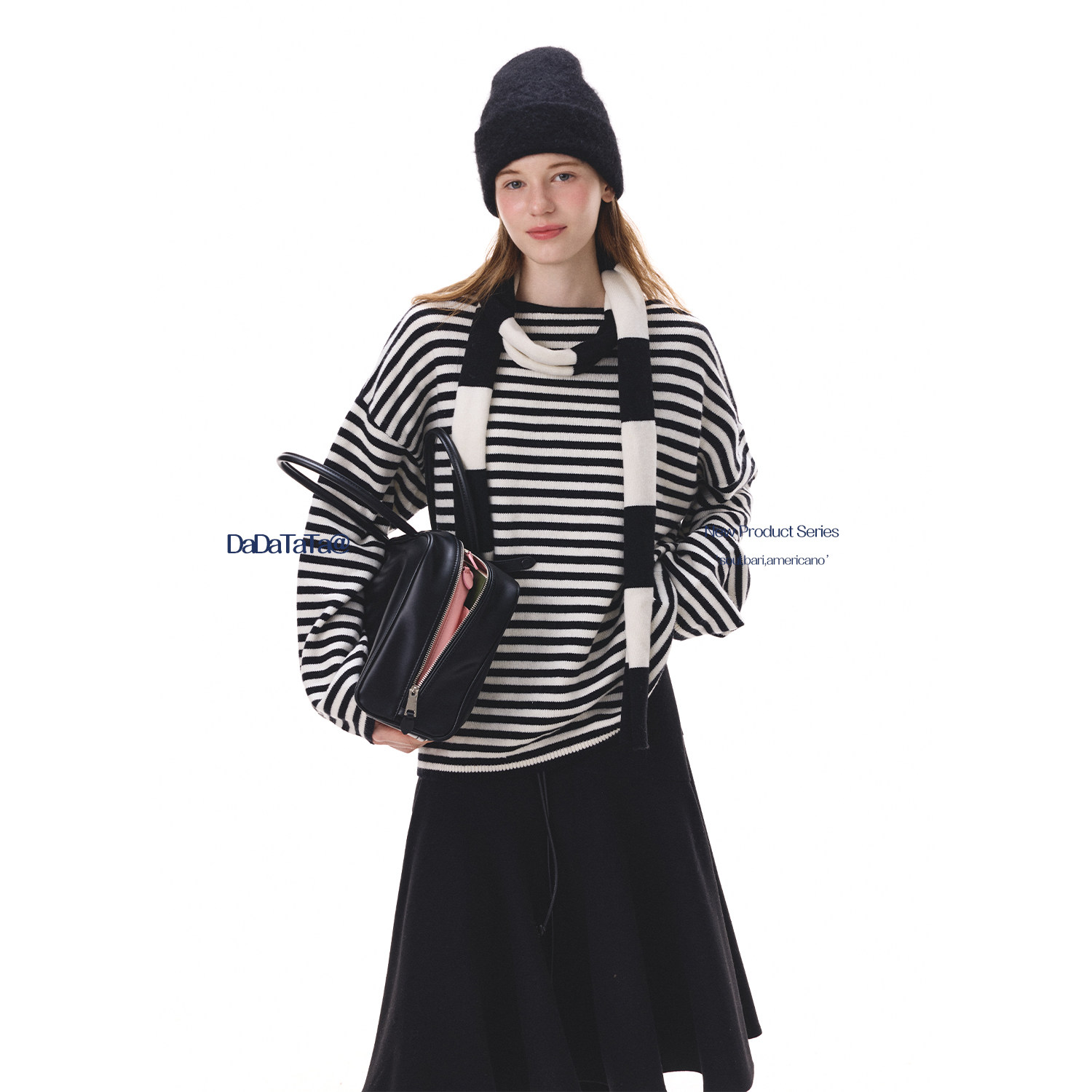 📚 晶咕白标DADATATA内里加绒显瘦直筒牛仔裤条纹针织带围巾毛衣