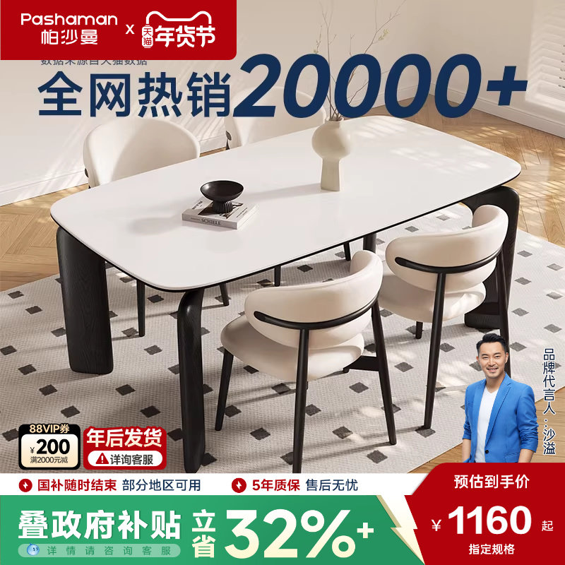 📚 政府补贴帕沙曼全托岩板餐桌复古风可变圆桌大象腿长方形吃饭桌子