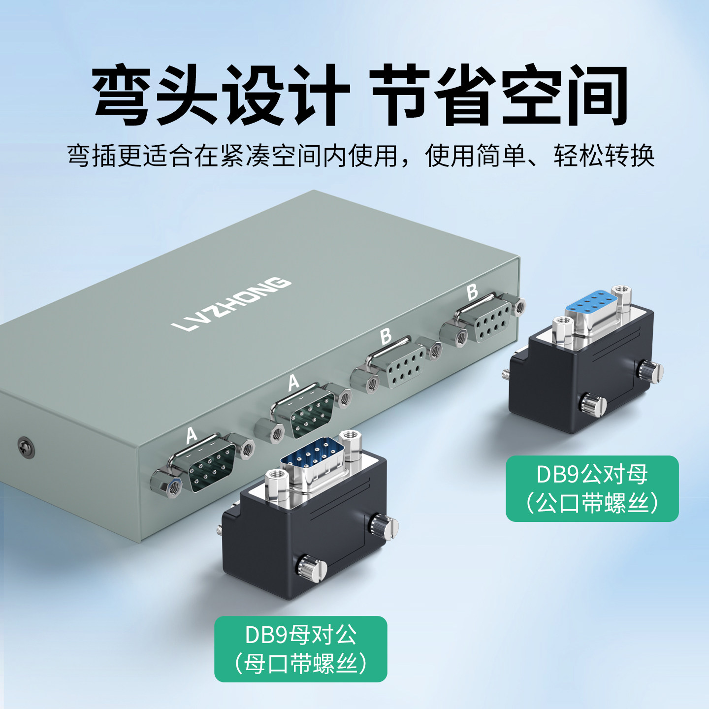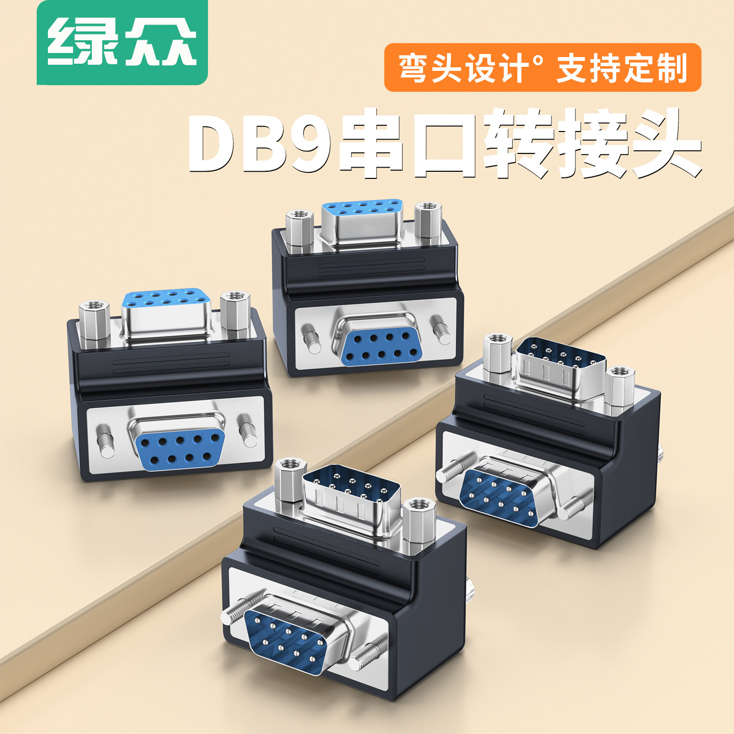 📚 绿众90度弯头DB9公转母转接头L型RS-232串口头DB9公母头9针连接器