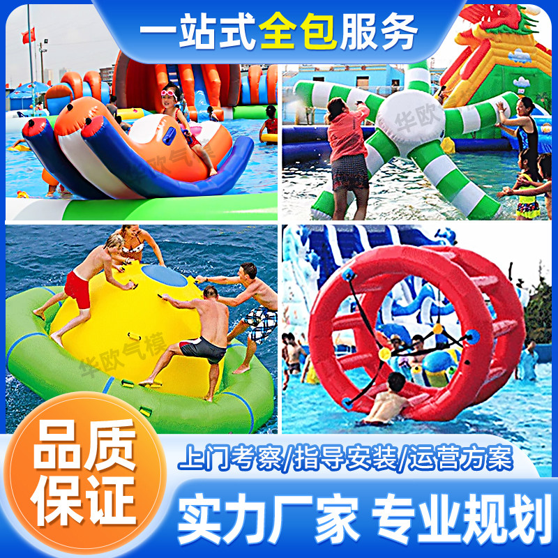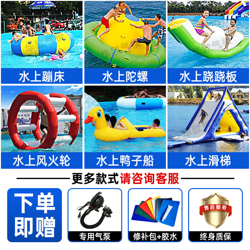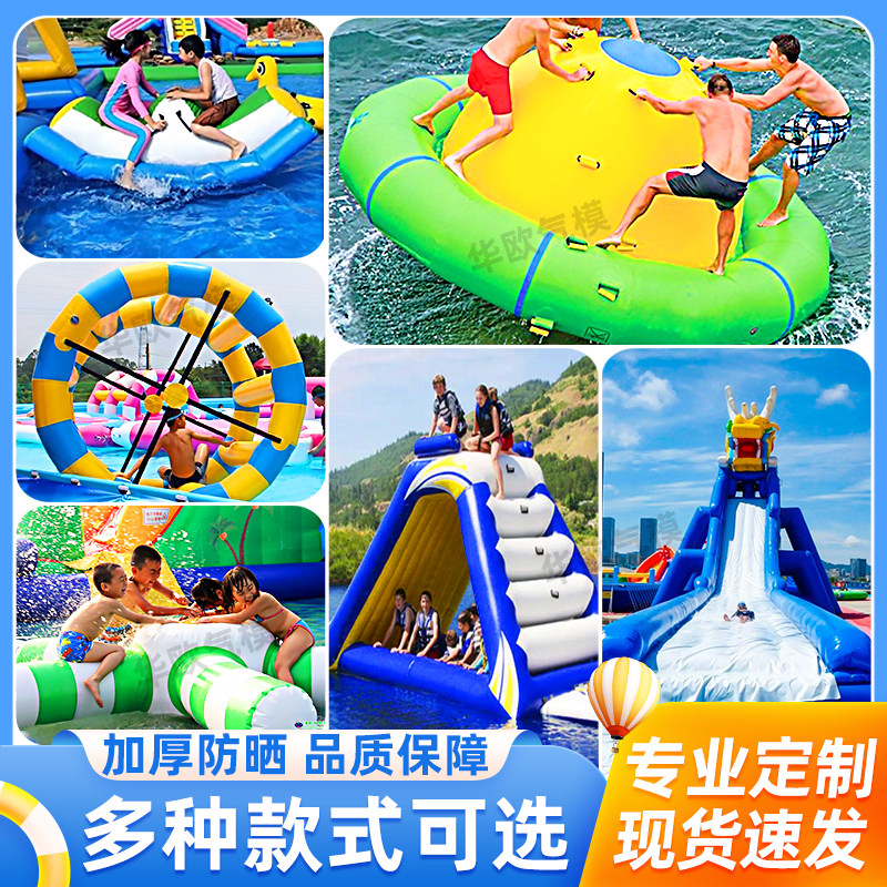 📚 水上大冰山充气三角滑梯攀岩跳床玩具游乐设备香蕉船陀螺水上飞鱼