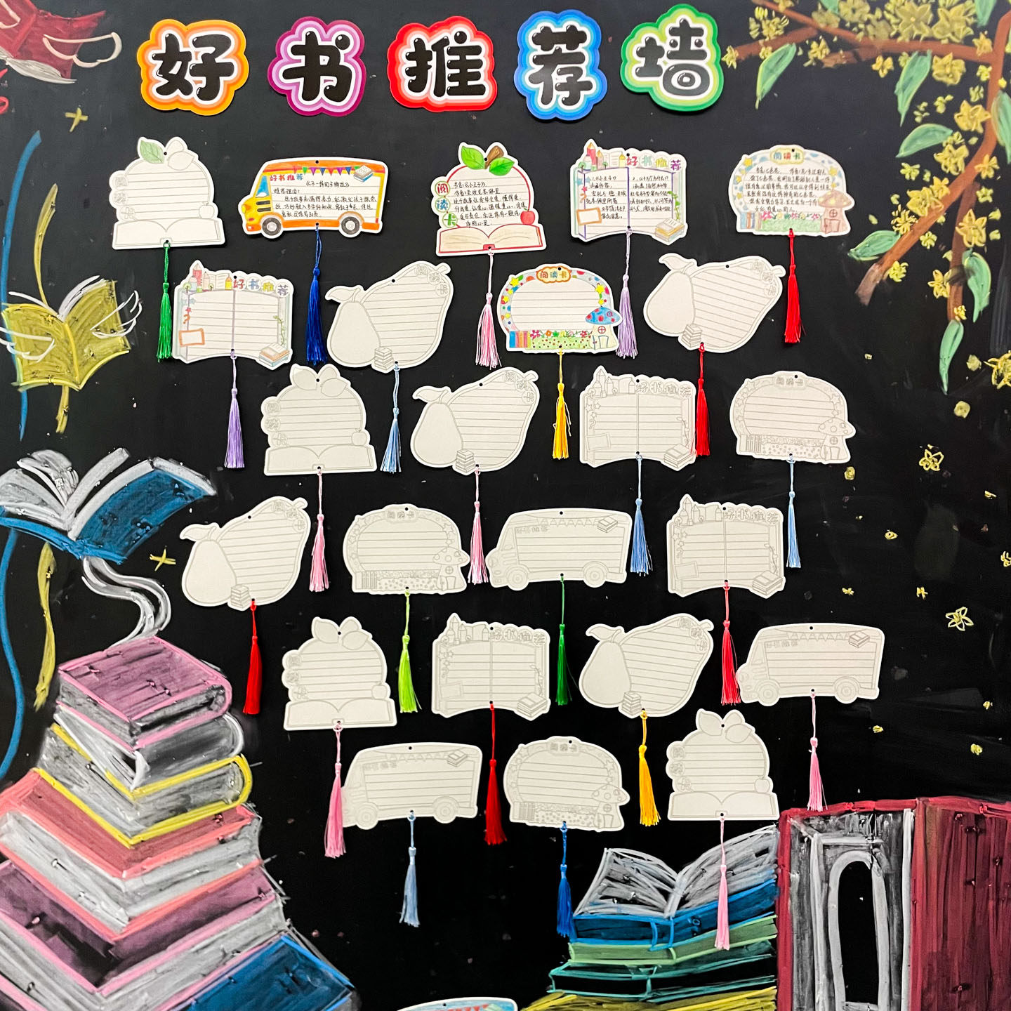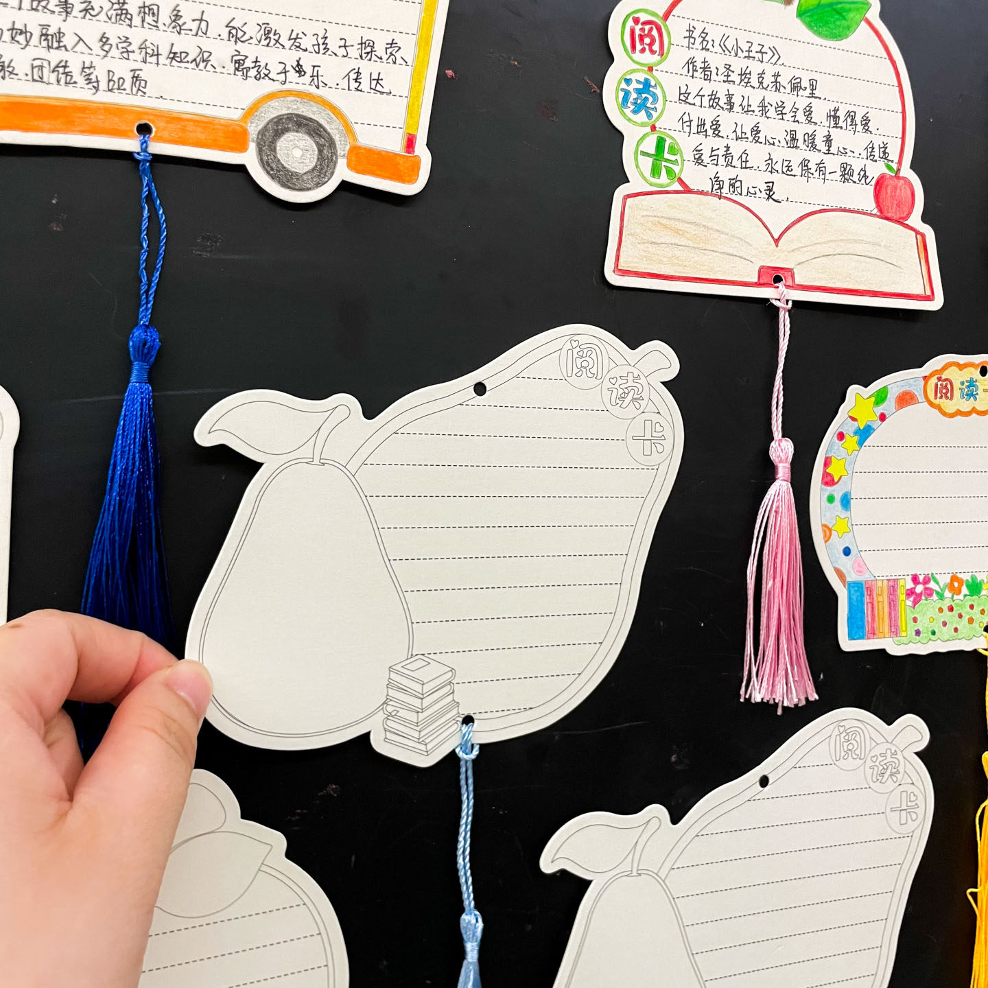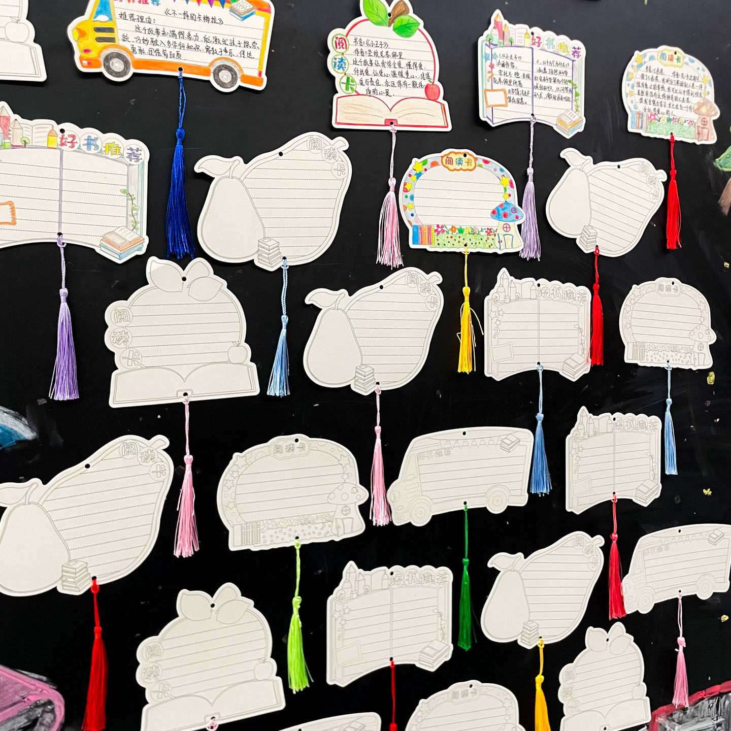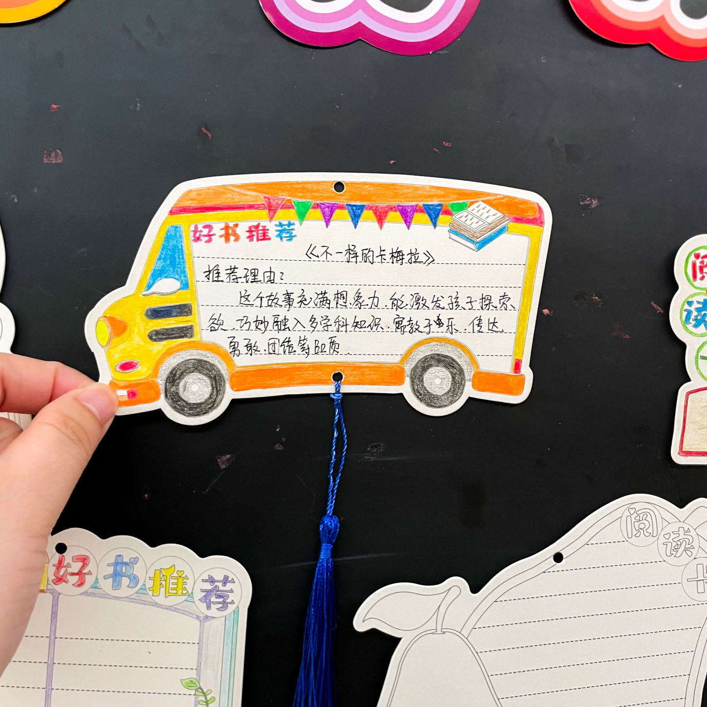 📚 创意卡通阅读记录卡好书推荐卡班级布置教室文化墙贴读书角装饰一二三年级小学生手工diy自制涂色模板半成品