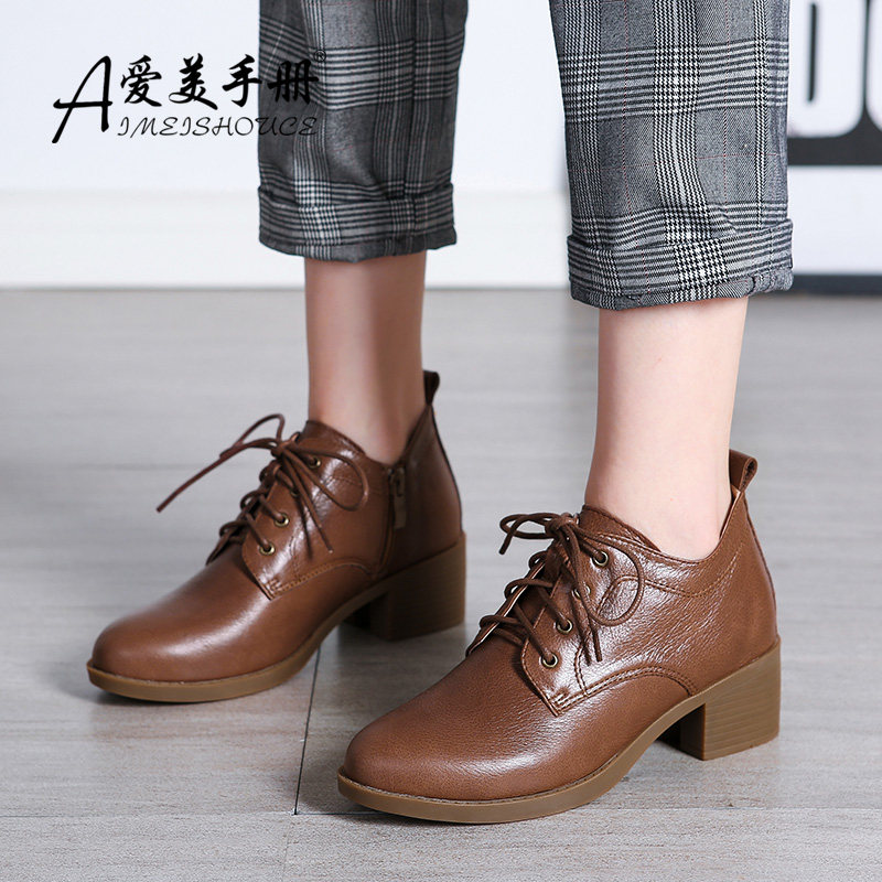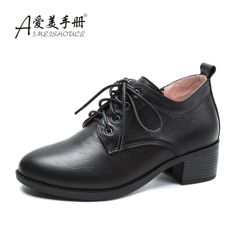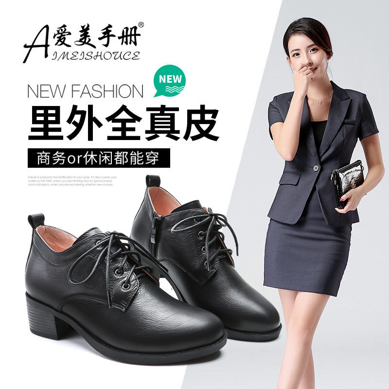 📚 大码女鞋脚宽胖妹妹春秋冬深口中跟工作鞋女单鞋加绒黑色上班皮鞋