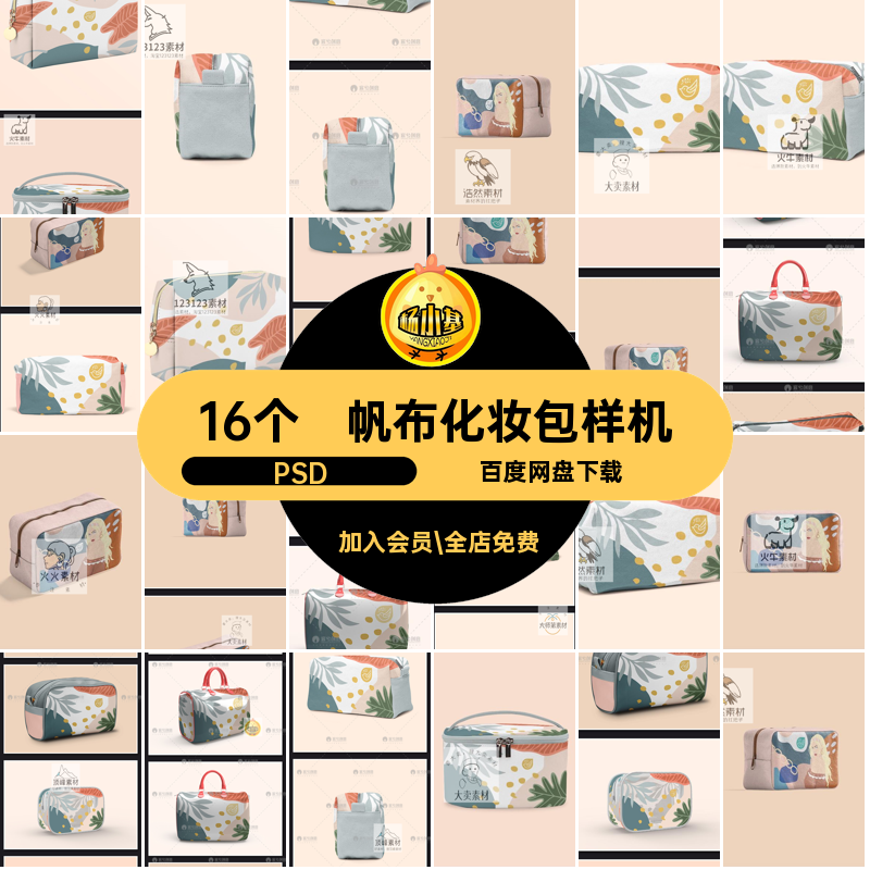 📚 帆布化妆包样机PSD收纳psd图案贴图旅行文16个创手包效果样机手包