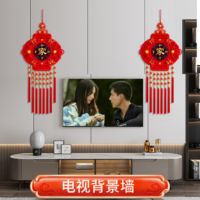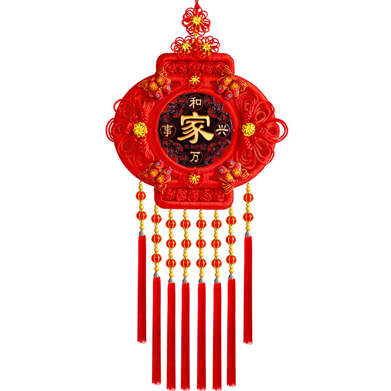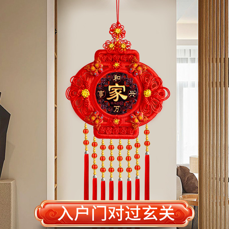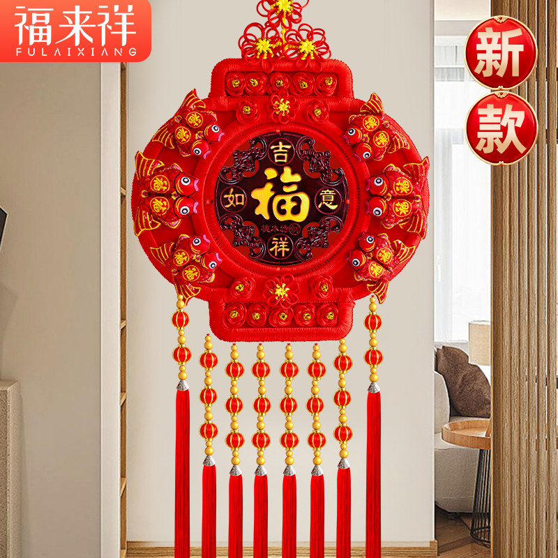 📚 新款灯笼中国结挂饰客厅客厅大号福字挂件桃木V背景墙入户进门