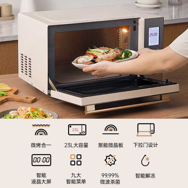 📚 大宇微波炉家用小型多功能微烤一体机23L大容量烤箱平板式下拉门