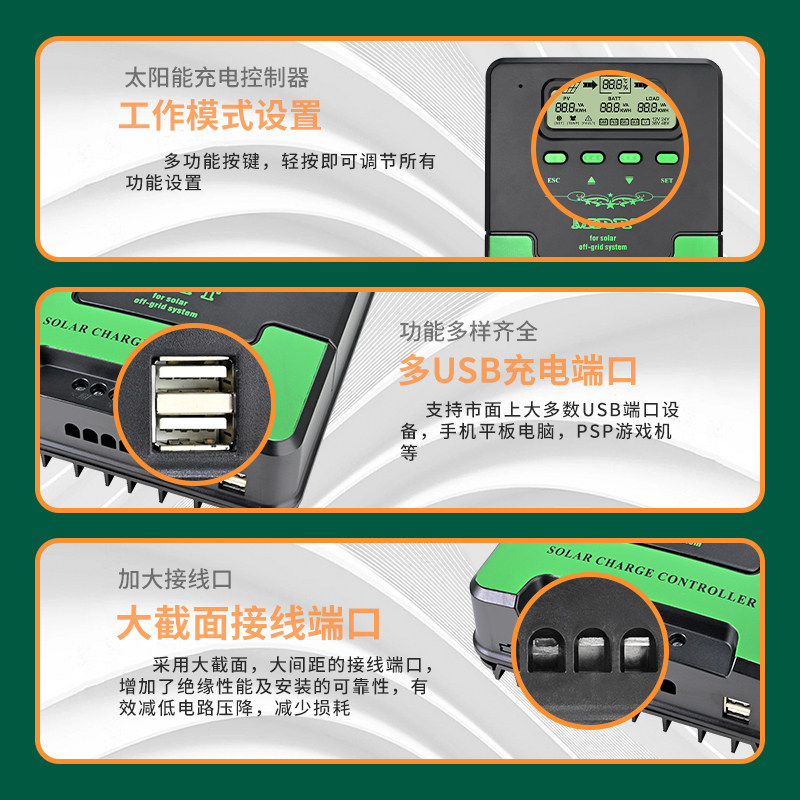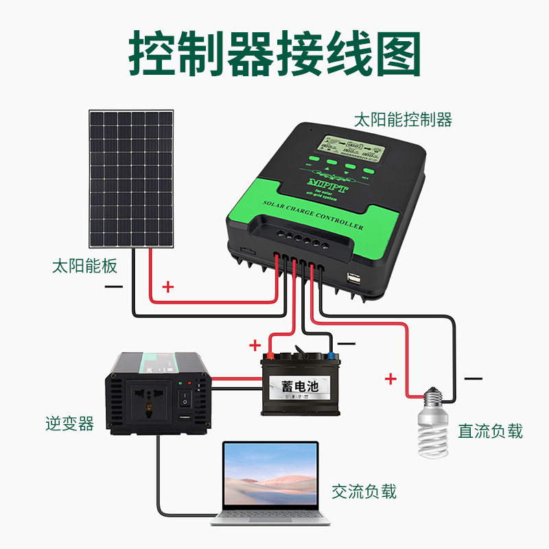 📚 MPPT太阳能控制器全自动通用12V24V蓄锂电池房车路灯光伏板充电器