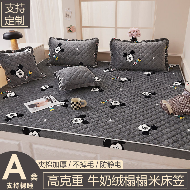 📚 牛奶绒夹棉加厚床笠一圈松紧全包防滑保暖大炕盖垫子保护套可定制
