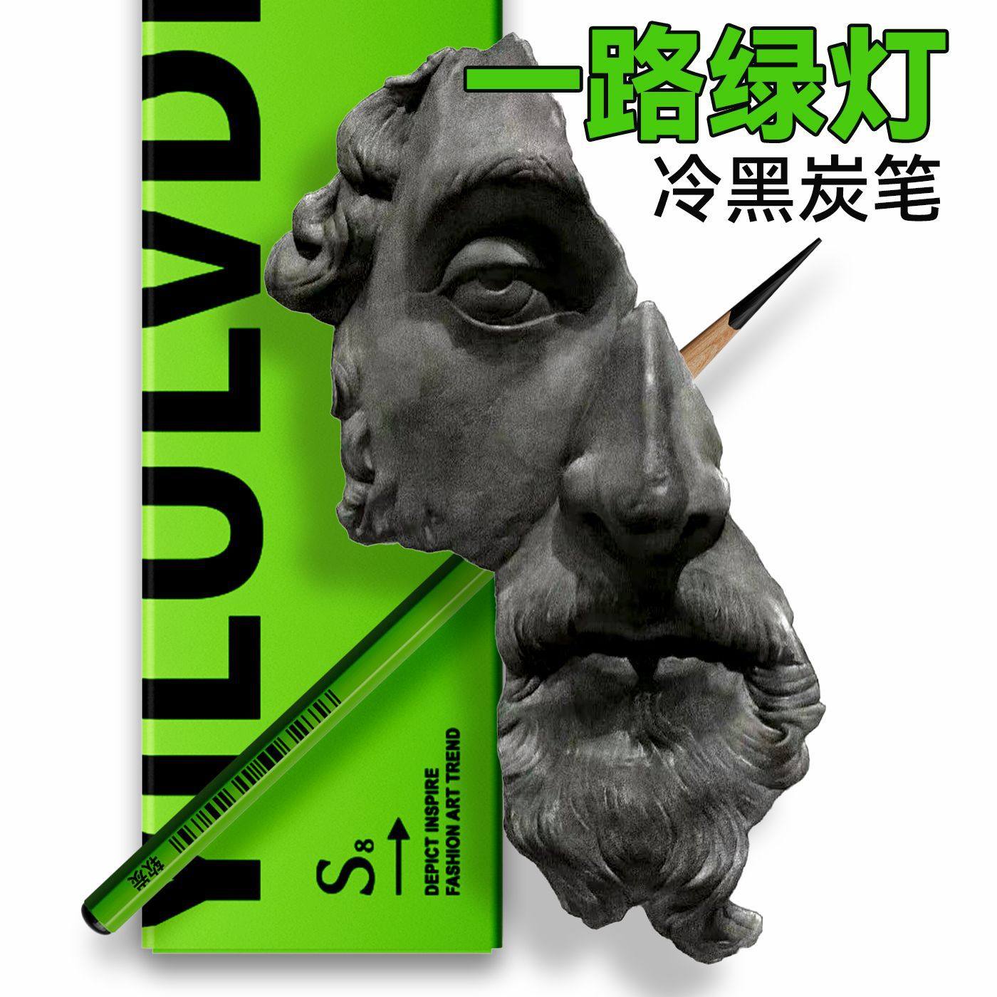 📚 一路绿灯炭笔碳笔套装美术生专用软碳素描笔绘画软碳笔铅笔碳