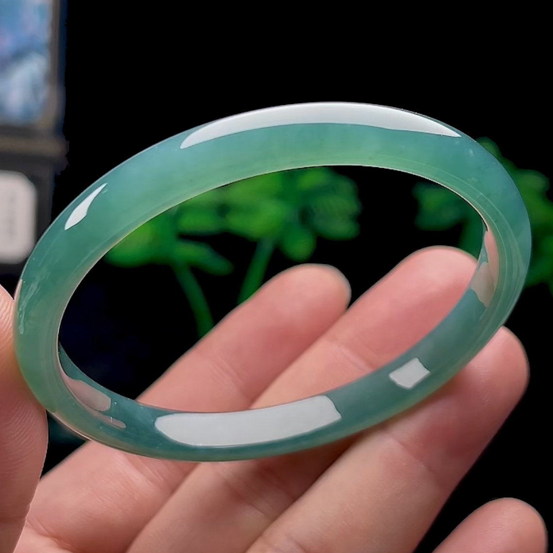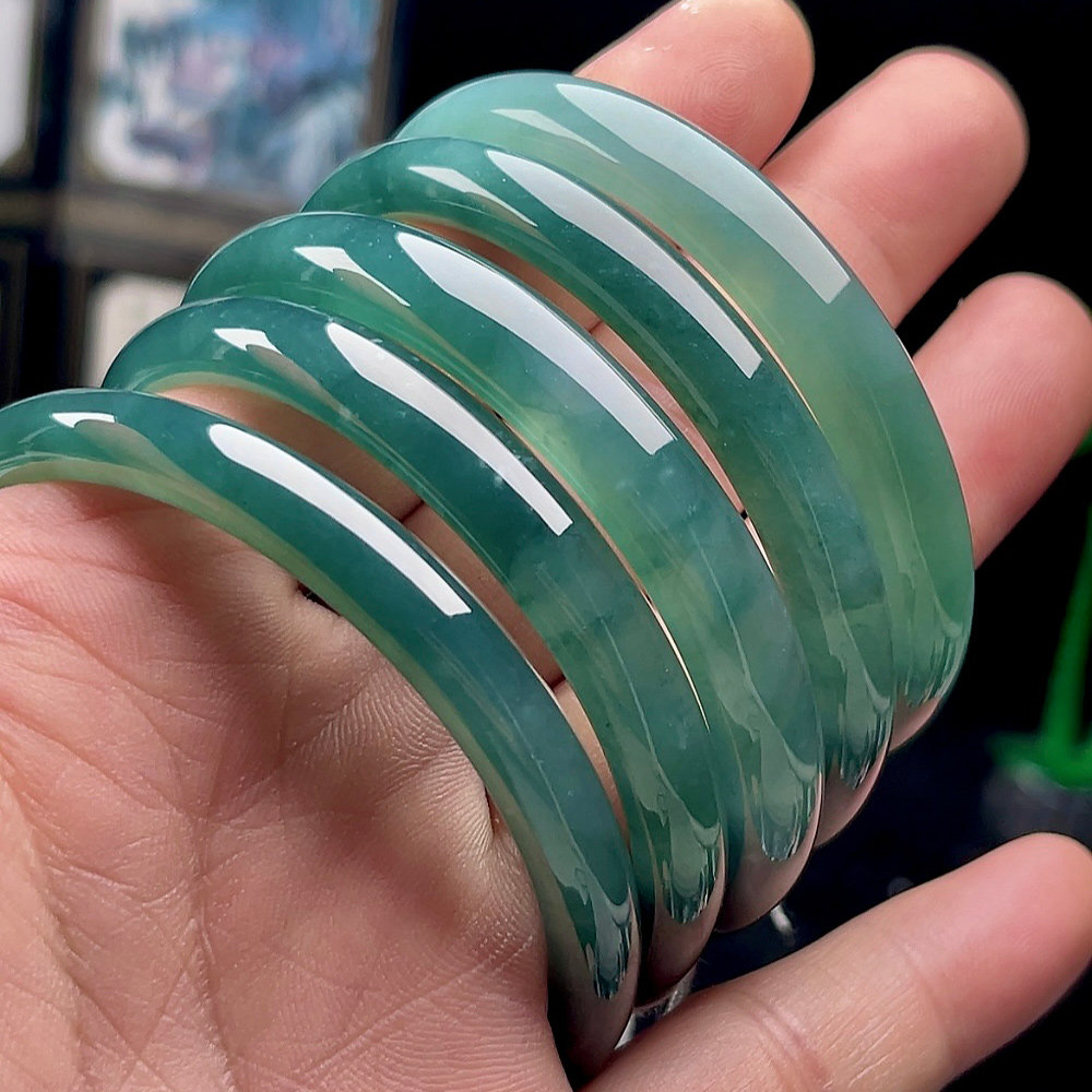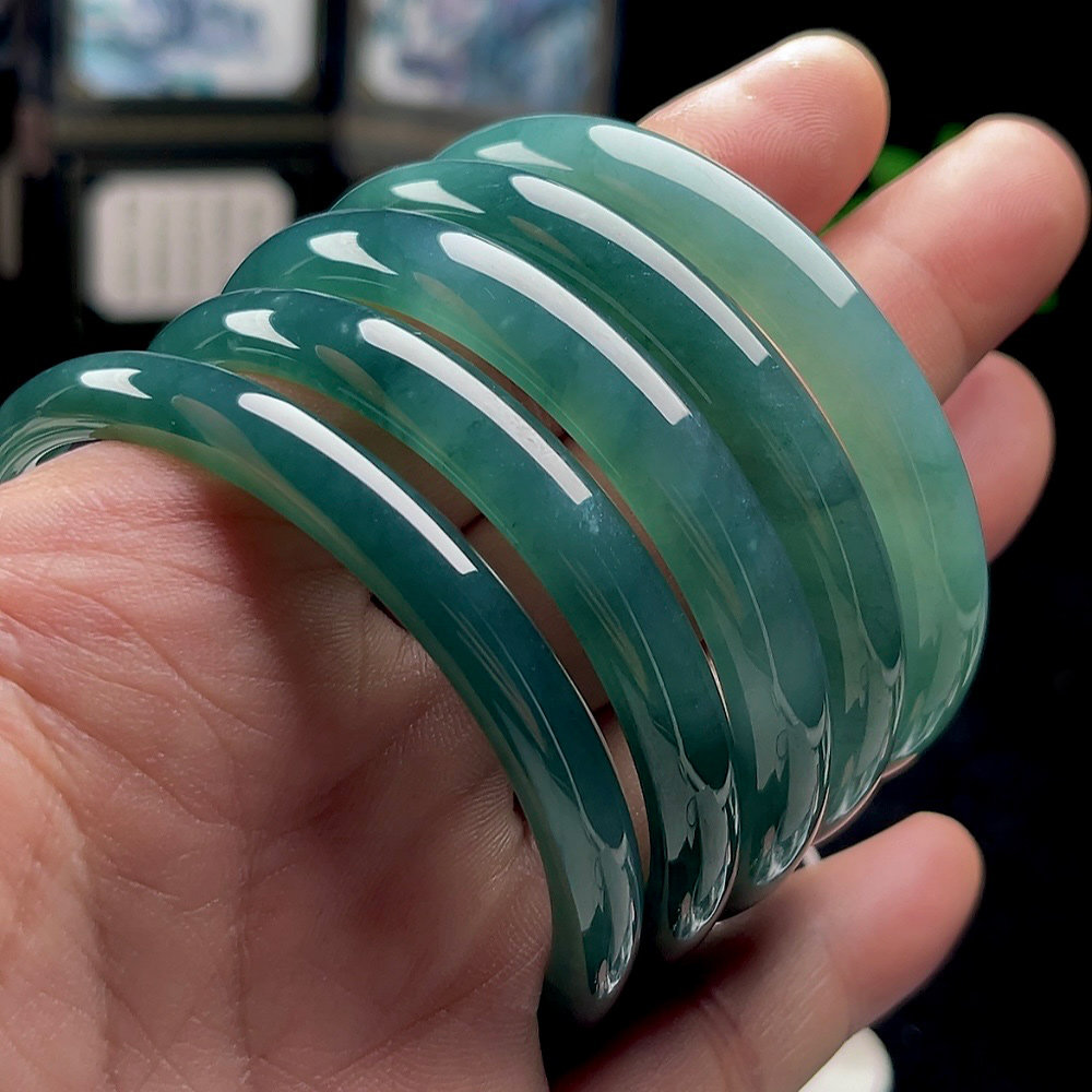 📚 50-60圈口正品A货翡翠手镯女圆镯中宽正装蓝水冰绿玉石天然玉镯子