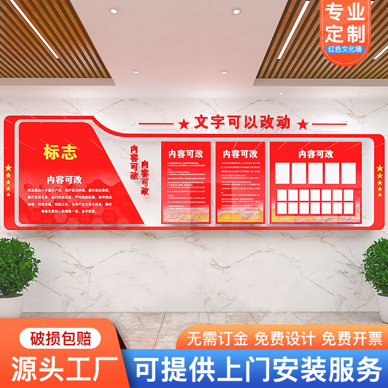 📚 党建文化墙设计党员活动室红色主题宣传布置定制党支部党务公开栏
