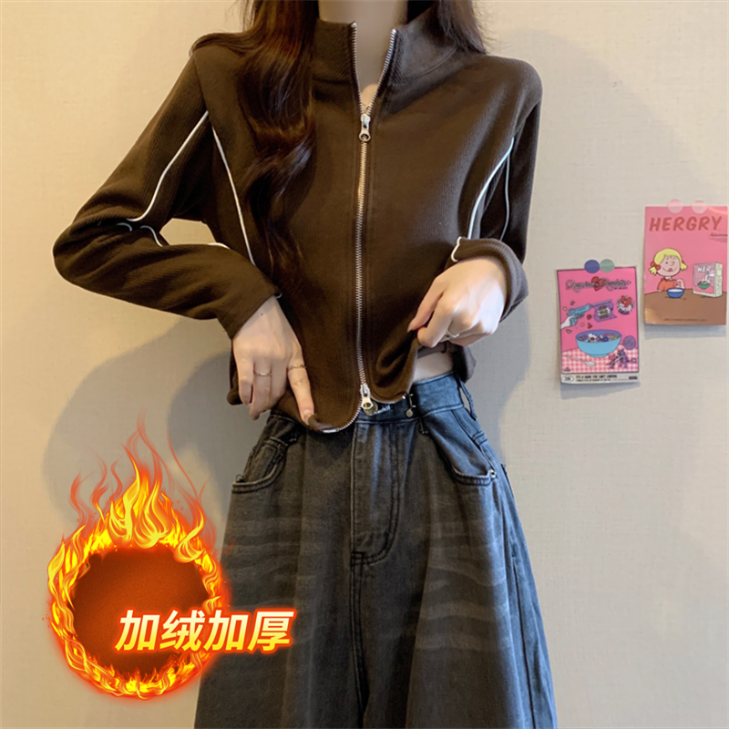#秋冬新品 #加绒加厚 #立领开衫 #修身短款上衣 #潮流单品