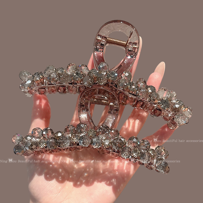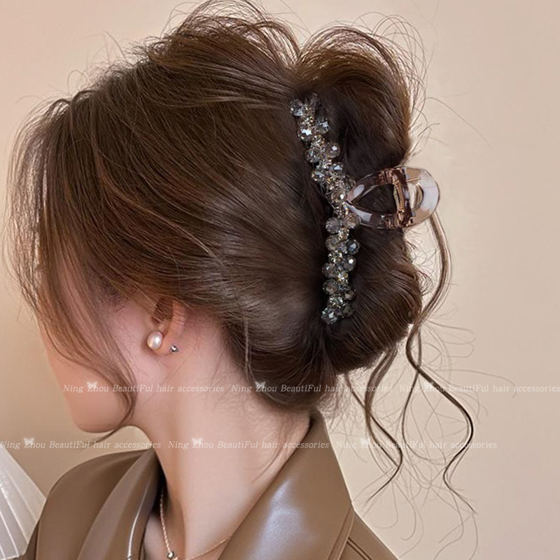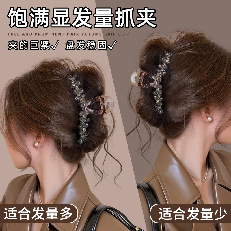 📚 大号发量多抓夹饱满后脑勺高级感盘发鲨鱼夹子头饰水晶发夹发卡女