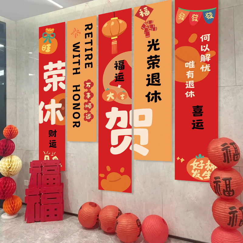 📚 光荣退休手持小横幅氛围挂布装饰老师领导同事场景道具背景仪式感