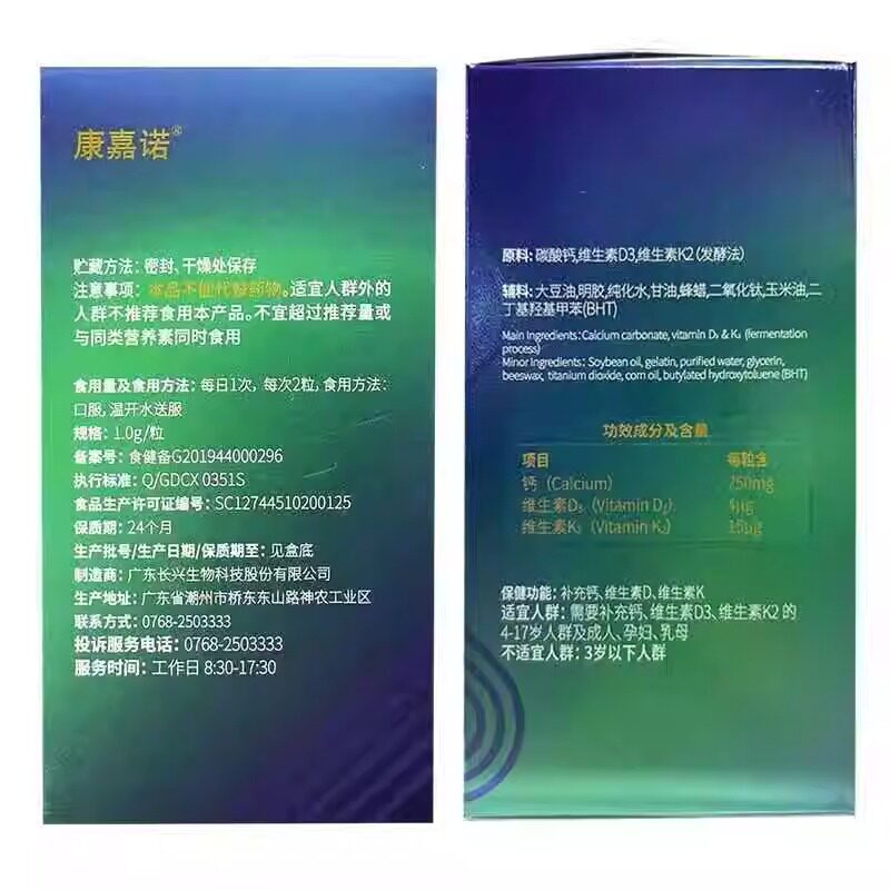 📚 中老年补钙】康嘉诺长兴牌钙维生素D维生素K软胶囊100粒