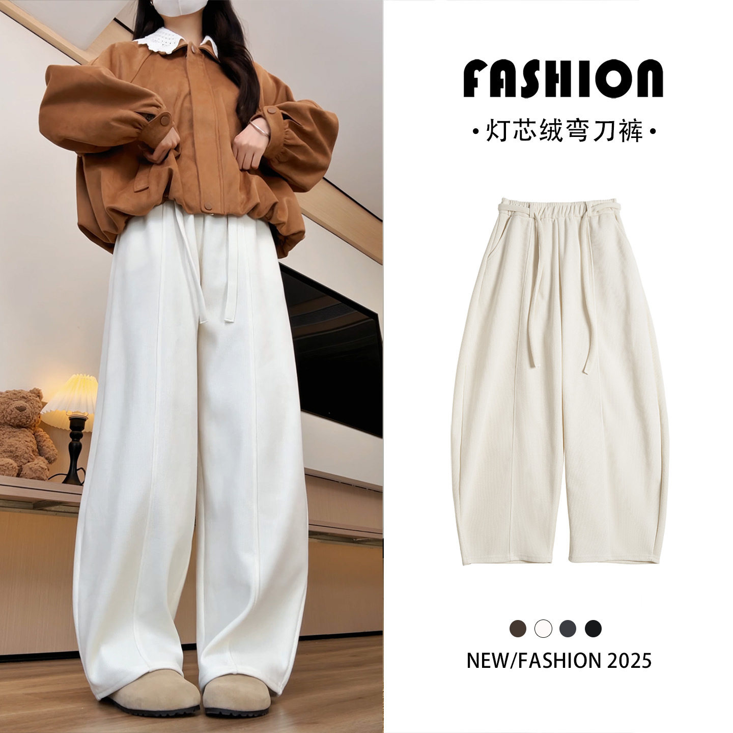 📚 白色灯芯绒裤子女新款秋冬小个子加绒加厚卫裤弯刀休闲阔腿裤