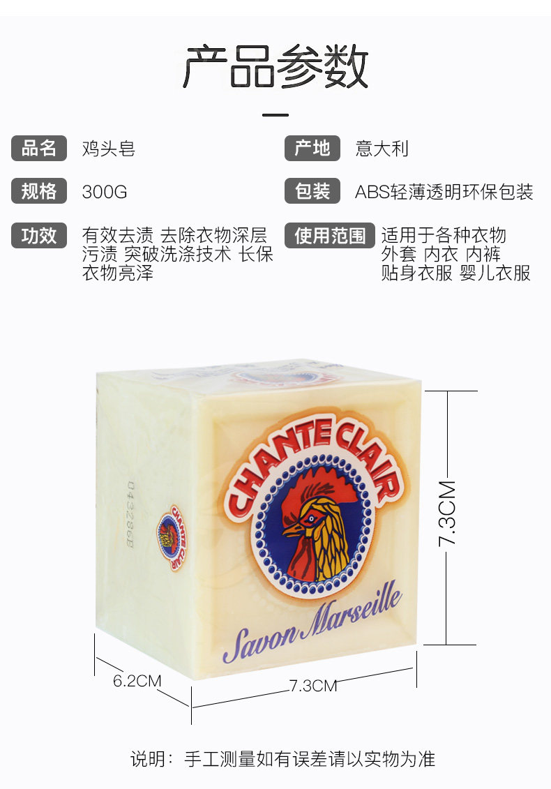 📚 意大利进口大公鸡头皂洗衣皂马赛皂女生内衣内裤童装肥皂300gx8块