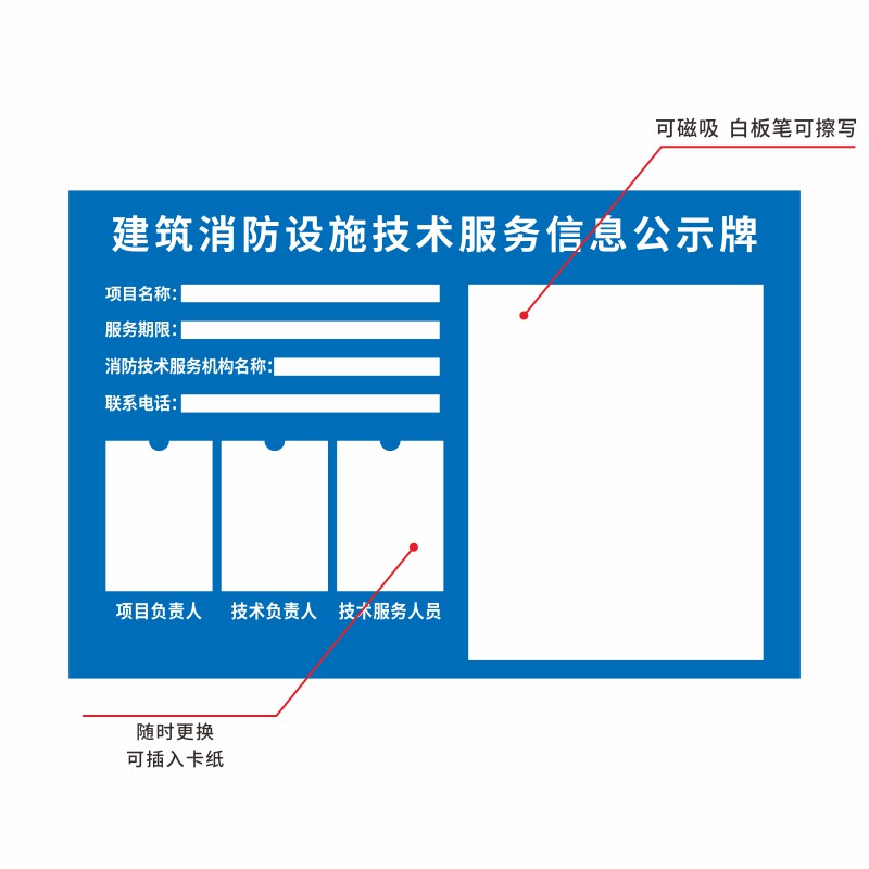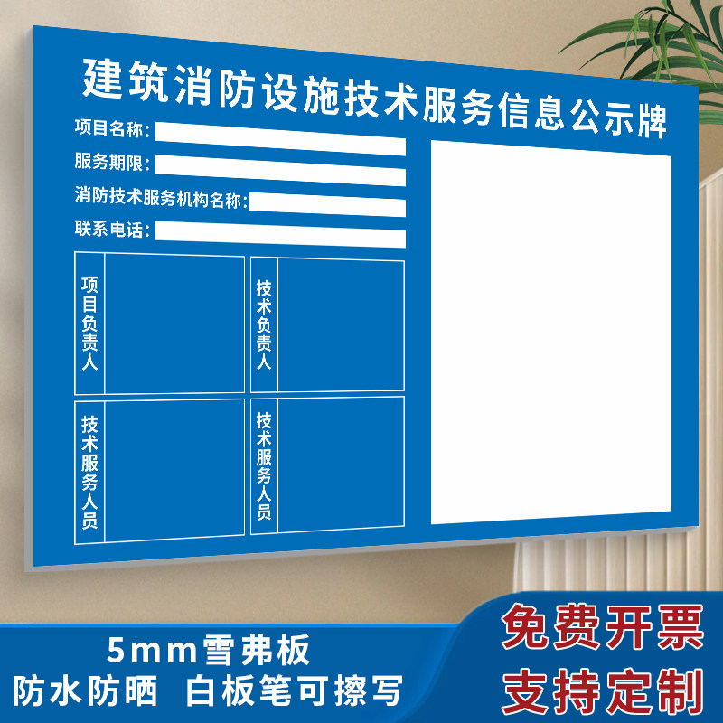 📚 消防安全公告栏建筑消防设施技术服务公示牌户外PVC板可擦写项目维保人员信息牌酒店工厂公司消防安全 标示牌