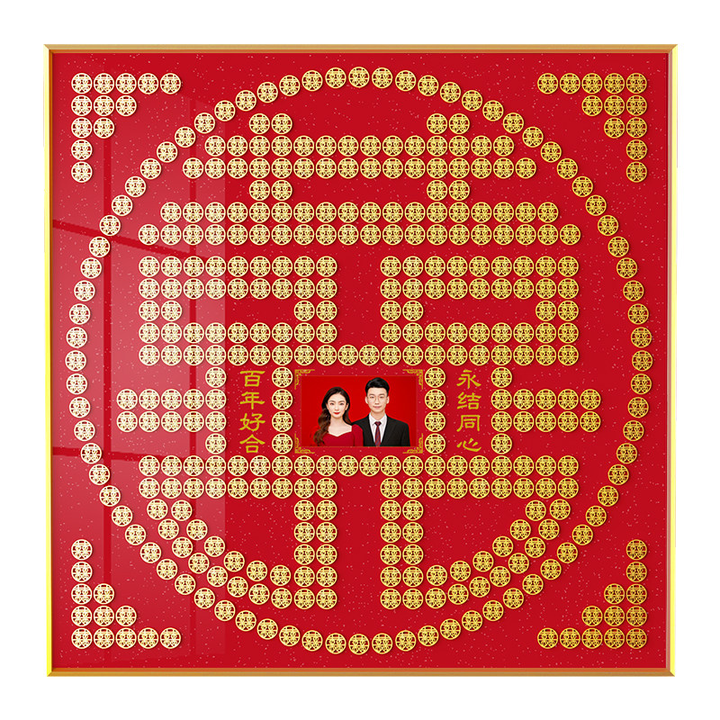 📚 结婚礼物送新人五毛硬币喜字贴5角硬币相框囍字模板新婚diy手工