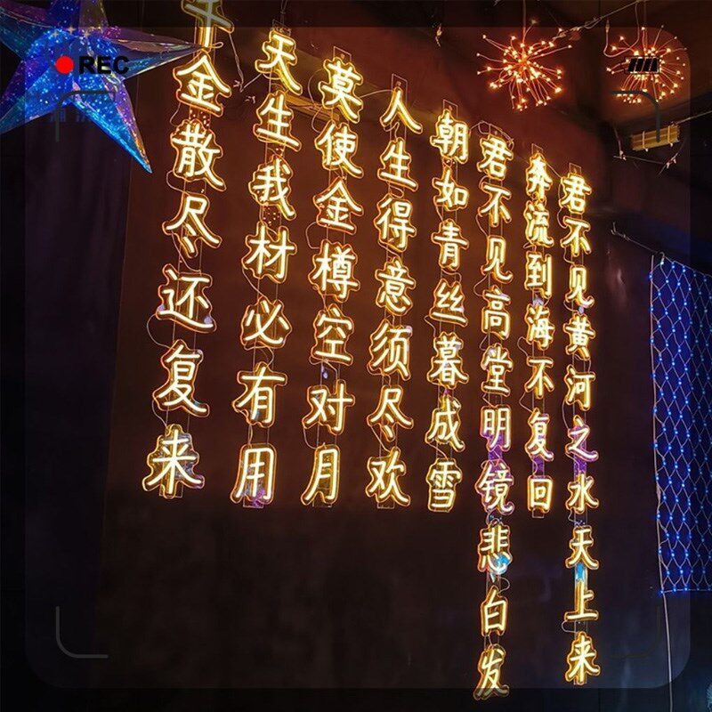 📚 霓虹灯古诗词灯串挂树彩灯条幅景区公园街道发光字树木景观灯定制
