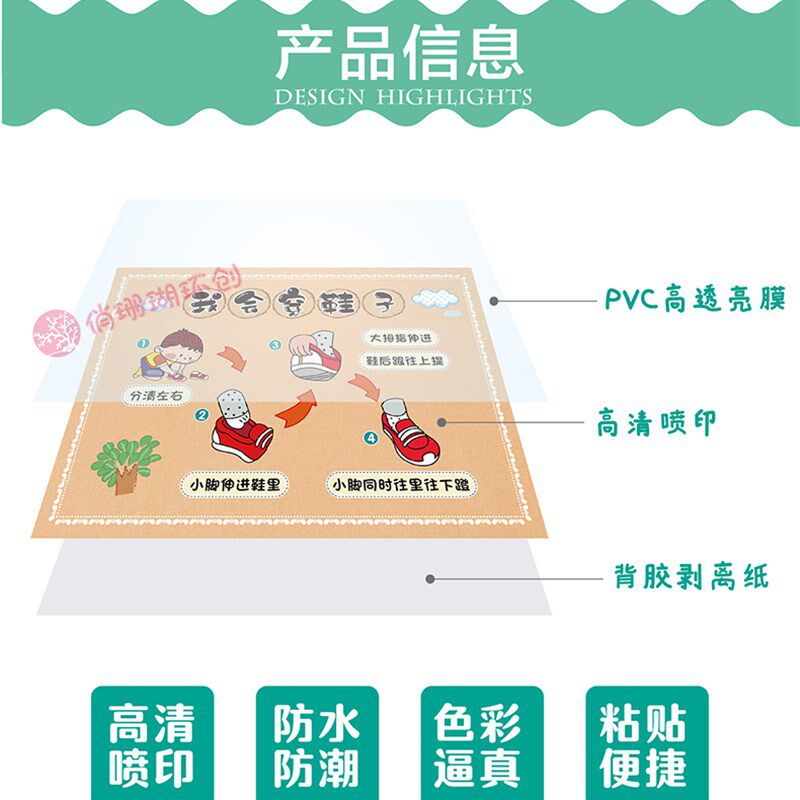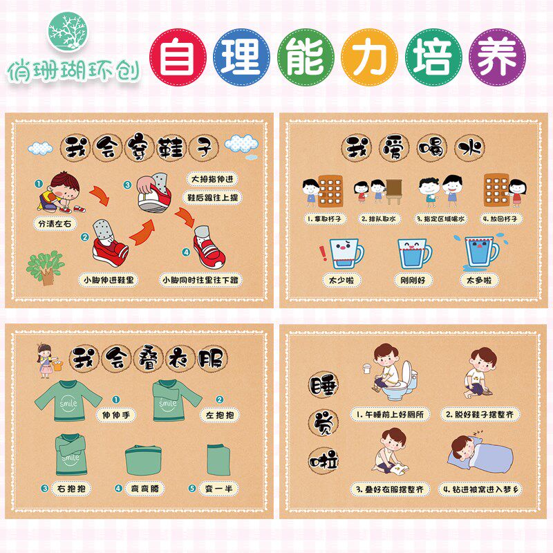 📚 幼儿园生活区自理能力环创墙贴 如厕洗脸穿衣服刷牙系鞋带步骤图