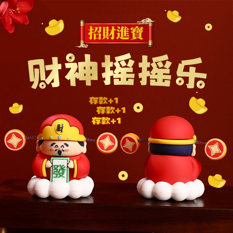📚 创意可爱摇耳朵财神公仔汽车后视镜挂件新年喜庆车载祥云小神仙