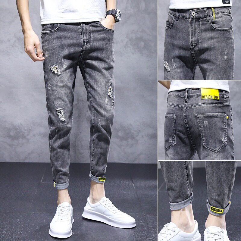 17¥ HU287 fZXk5QeOBMi¥ https://m.tb.cn/h.itNemgs 牛仔裤男士夏季薄款2026新款九分破洞小脚弹力款修身韩版休闲男裤 --------------------- 【原售价】128元 【现售价】119元。