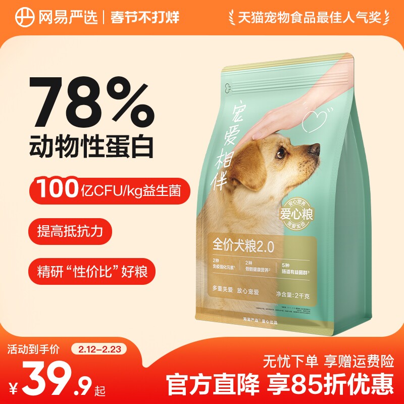 📚 网易严选宠爱相伴犬粮老成犬幼犬低敏羊奶粉公益狗粮40斤装通用型