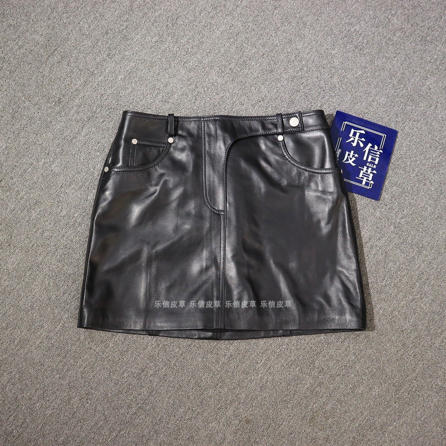 📚 新款真皮皮裙女绵羊皮时尚百搭一步裙显瘦气质半身裙短款复古皮裙