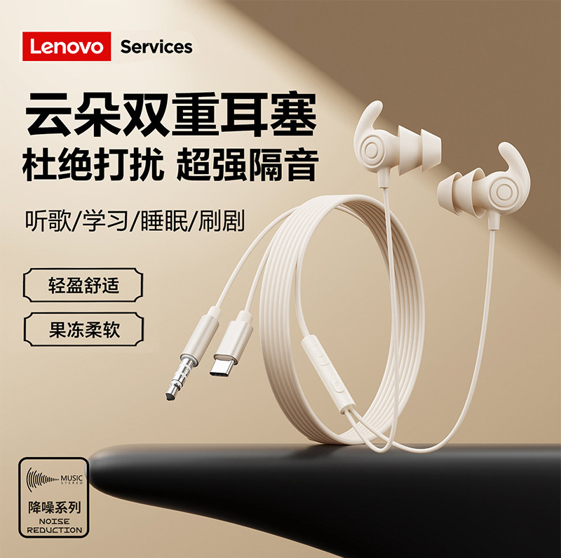 📚 联想有线睡眠耳机睡觉专用超级隔音睡眠可侧睡asmr防噪音无感超轻