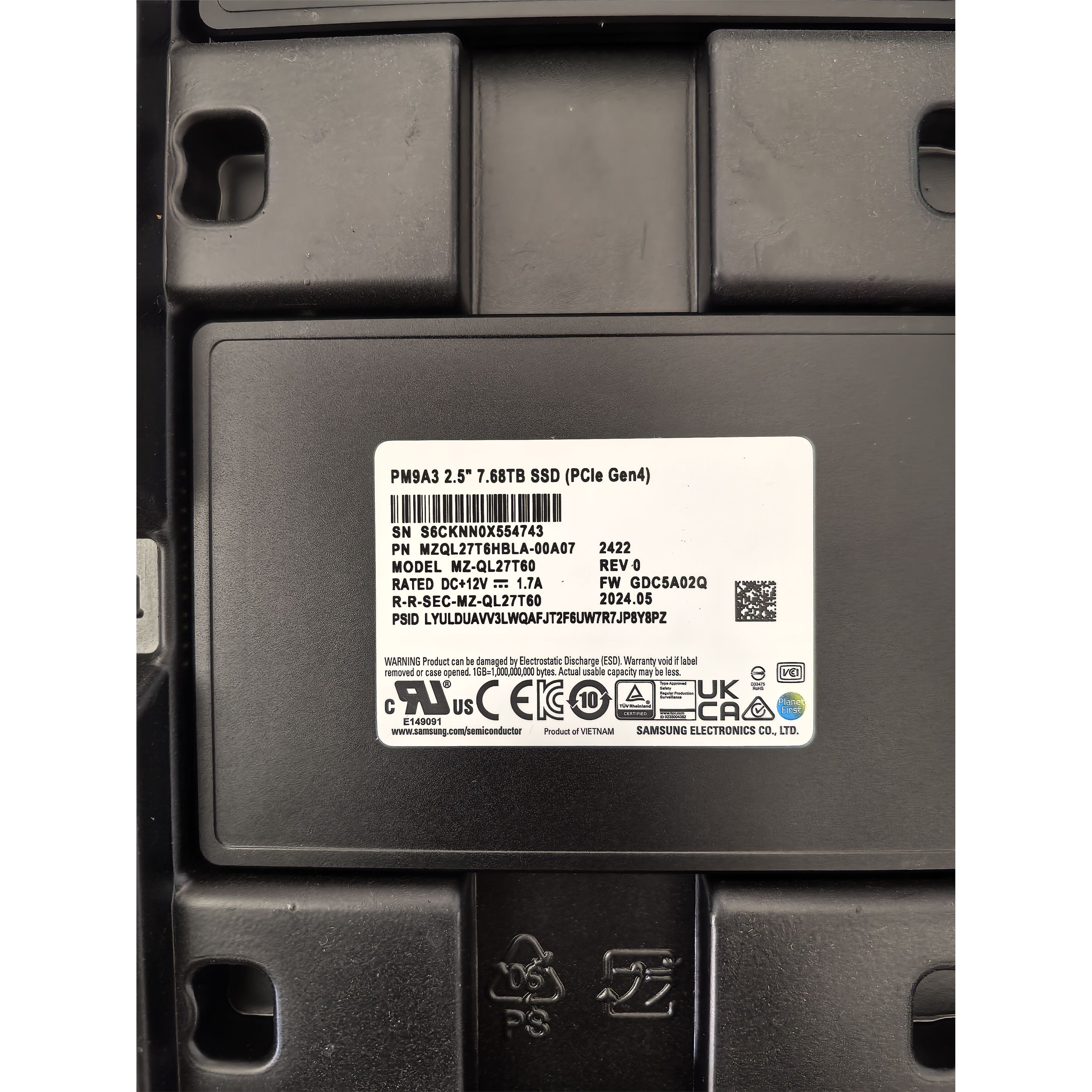 📚 三星PM9A3 7.68T U.2 NVME企业级固态盘MZQL27T6HBLA-000A07