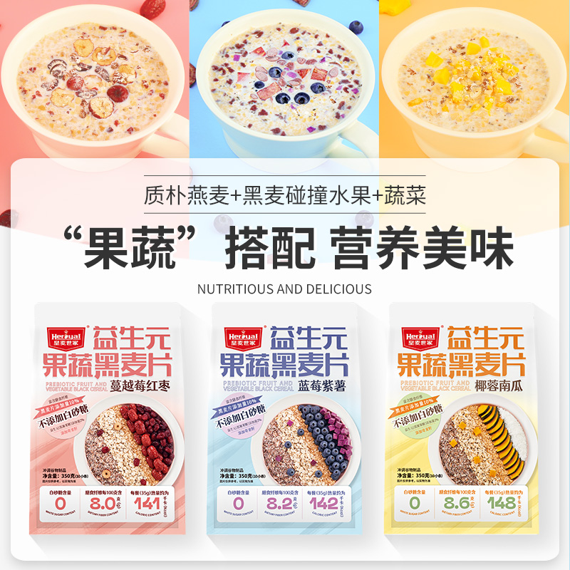 📚 皇麦世家益生元麦片早餐即食蔓越莓红枣果蔬营养燕麦片无添加蔗糖